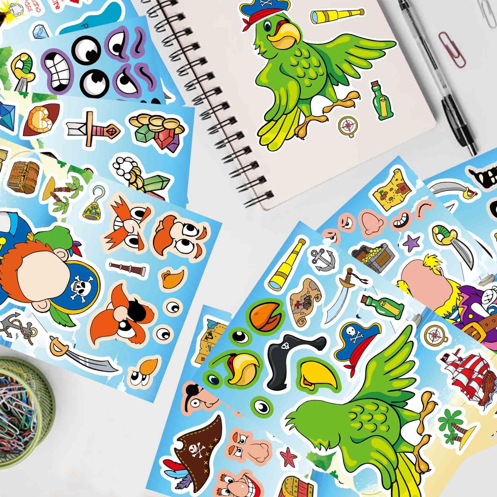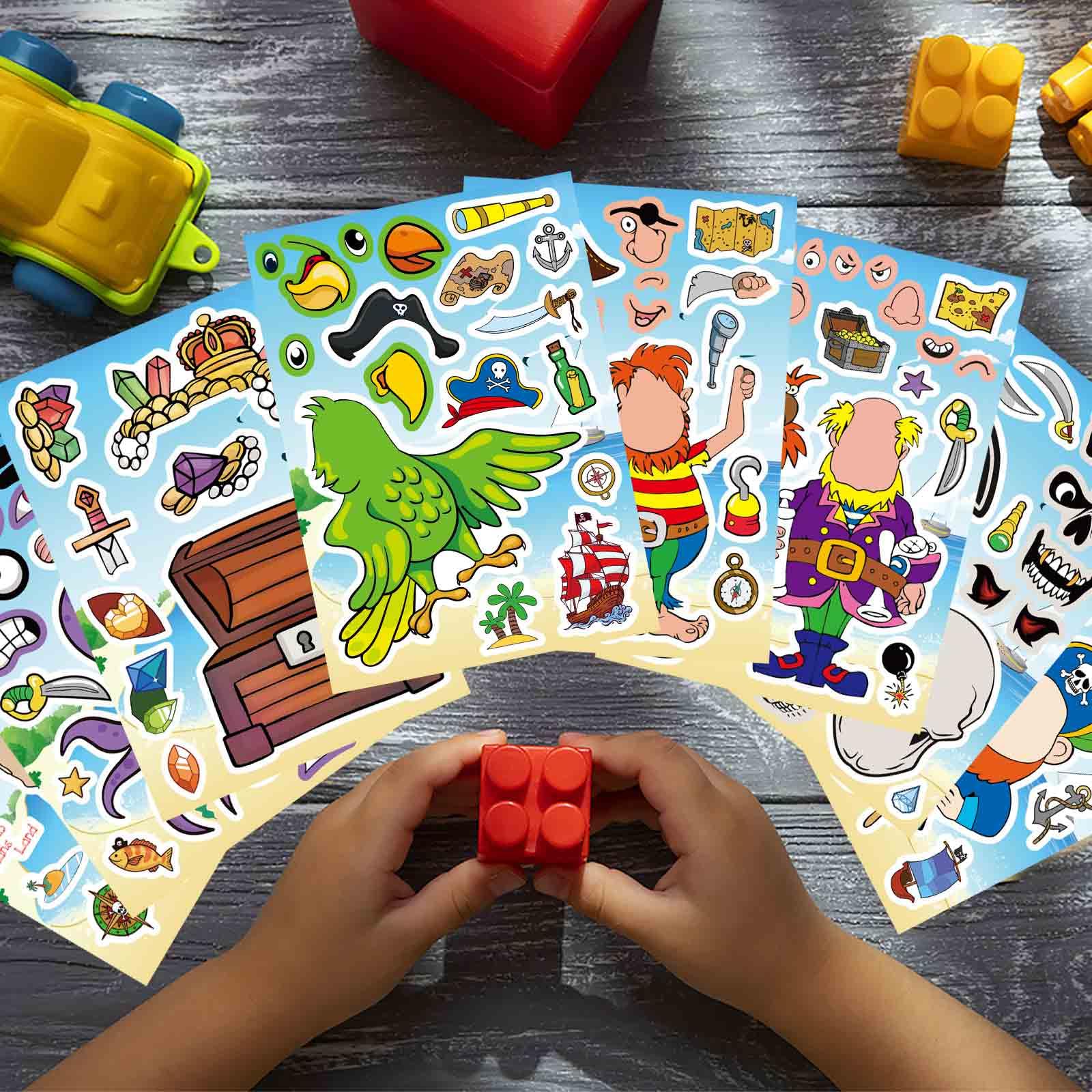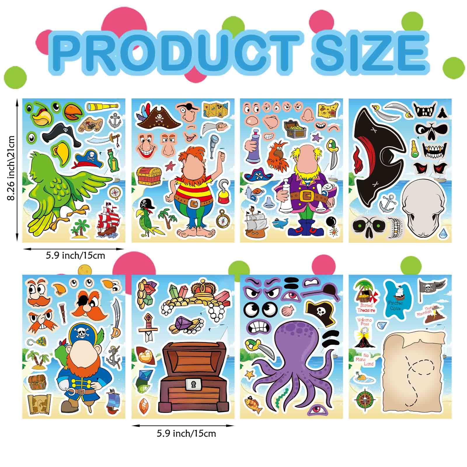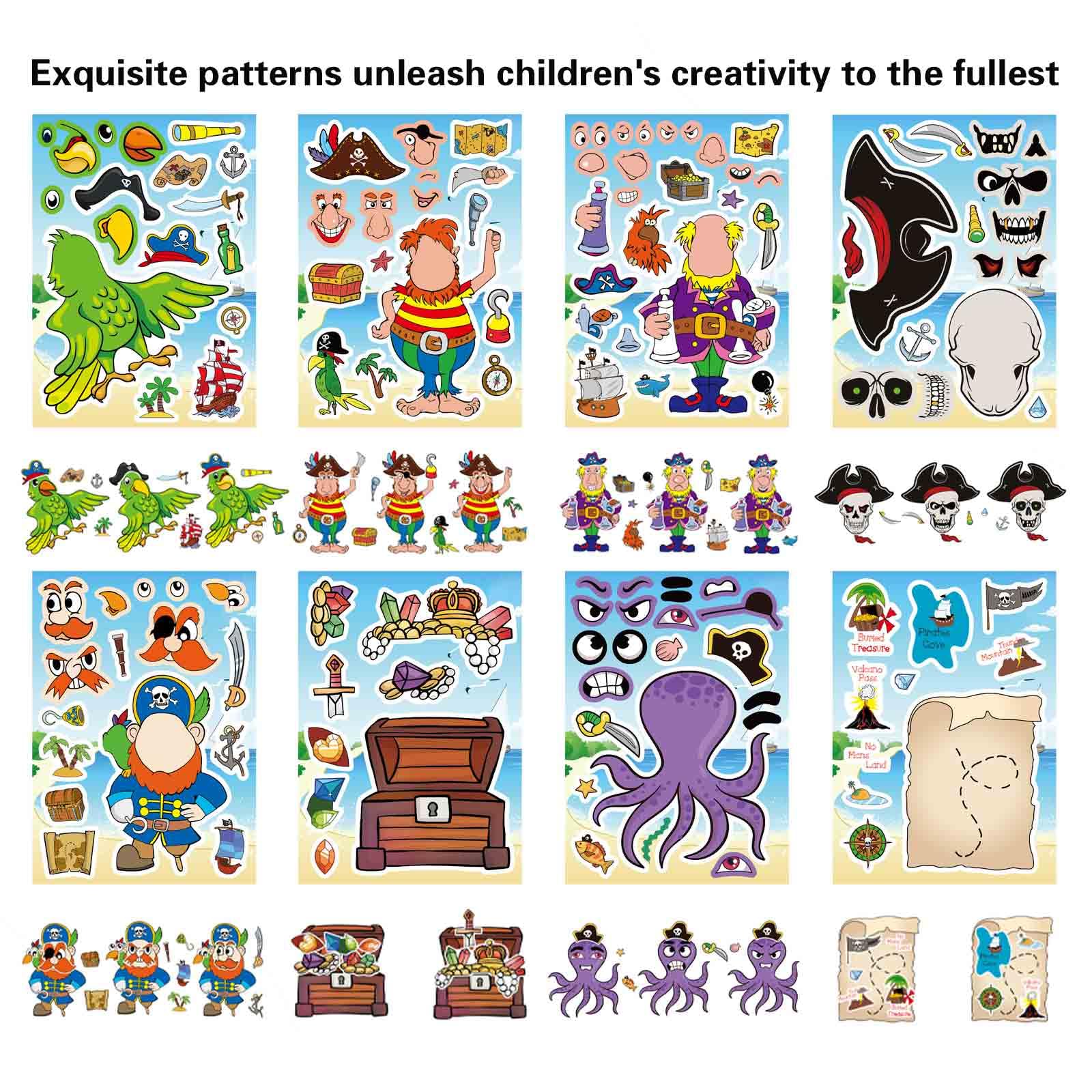 Make a Face Pirate Stickers: Made from high-quality, durable materials, these pirate stickers are waterproof and long-lasting. As kids peel, stick, and arrange them, they improve hand-eye coordination and spatial awareness. The creative process encourages self-expression while fueling their imagination with pirate adventures.