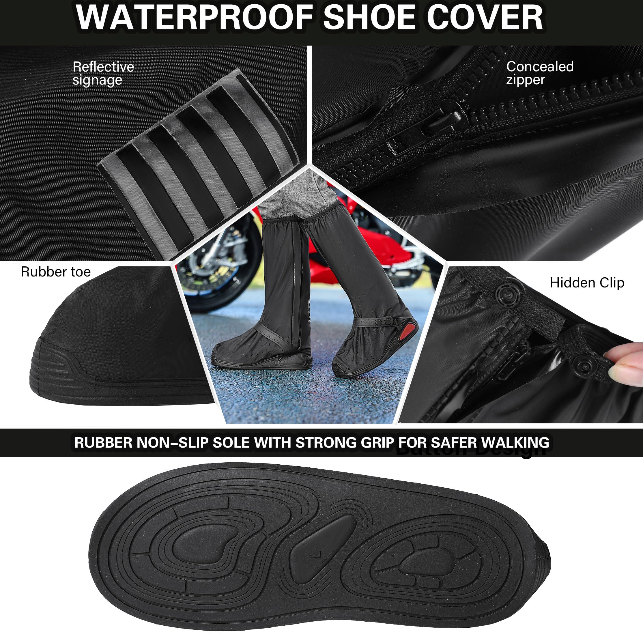 Made of high-quality PVC material, breathable knitted fabric and waterproof zipper, 100% waterproof and wear-resistant, can keep your shoes or boots dry and clean