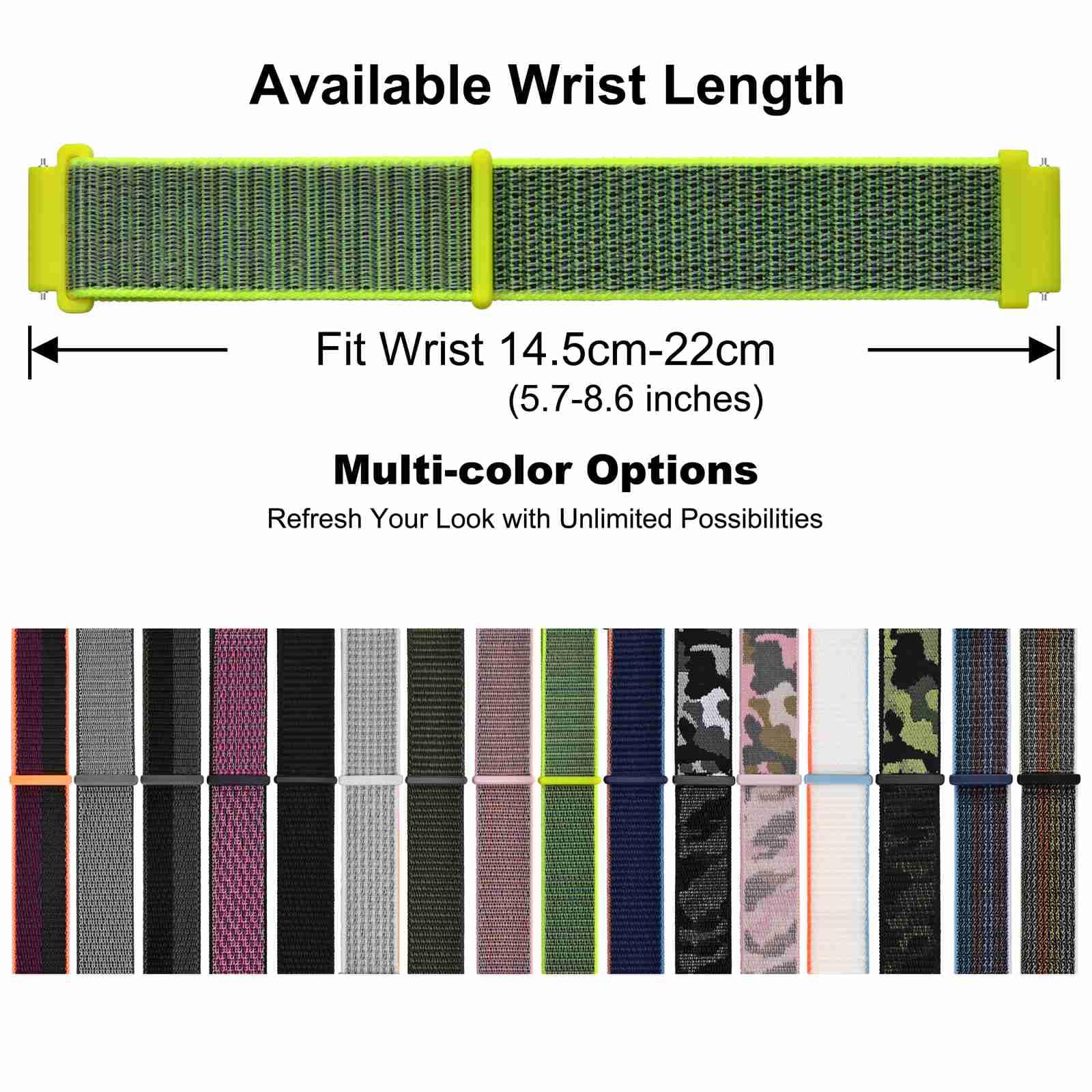 Band Width (Size): Standard 16mm, 18mm, 19mm, 20mm, 21mm, 22mm, 24mm. This watch band is compatible with all watches (including smart watches) with above band width. To determine the right size, use a ruler measure the interior distance between the two lugs on the watch case.