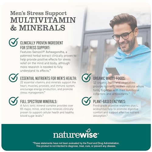 STRESS SUPPORT: NatureWise Men's Multivitamin features Sensoril Ashwagandha, a potent herbal extract that's been studied for its potential to support your body's stress response.*