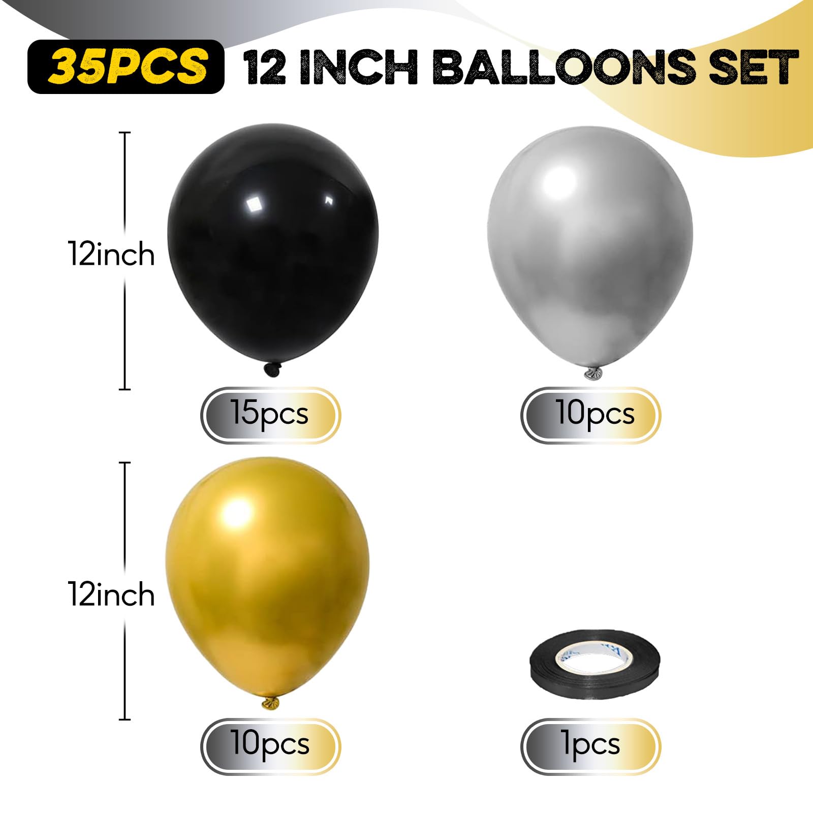 Black Gold Balloon: 35Pcs 12 inch balloons and 1 white ribbon set. Choose our balloons can contribute to a lively atmosphere at your party, creating delightful memories.