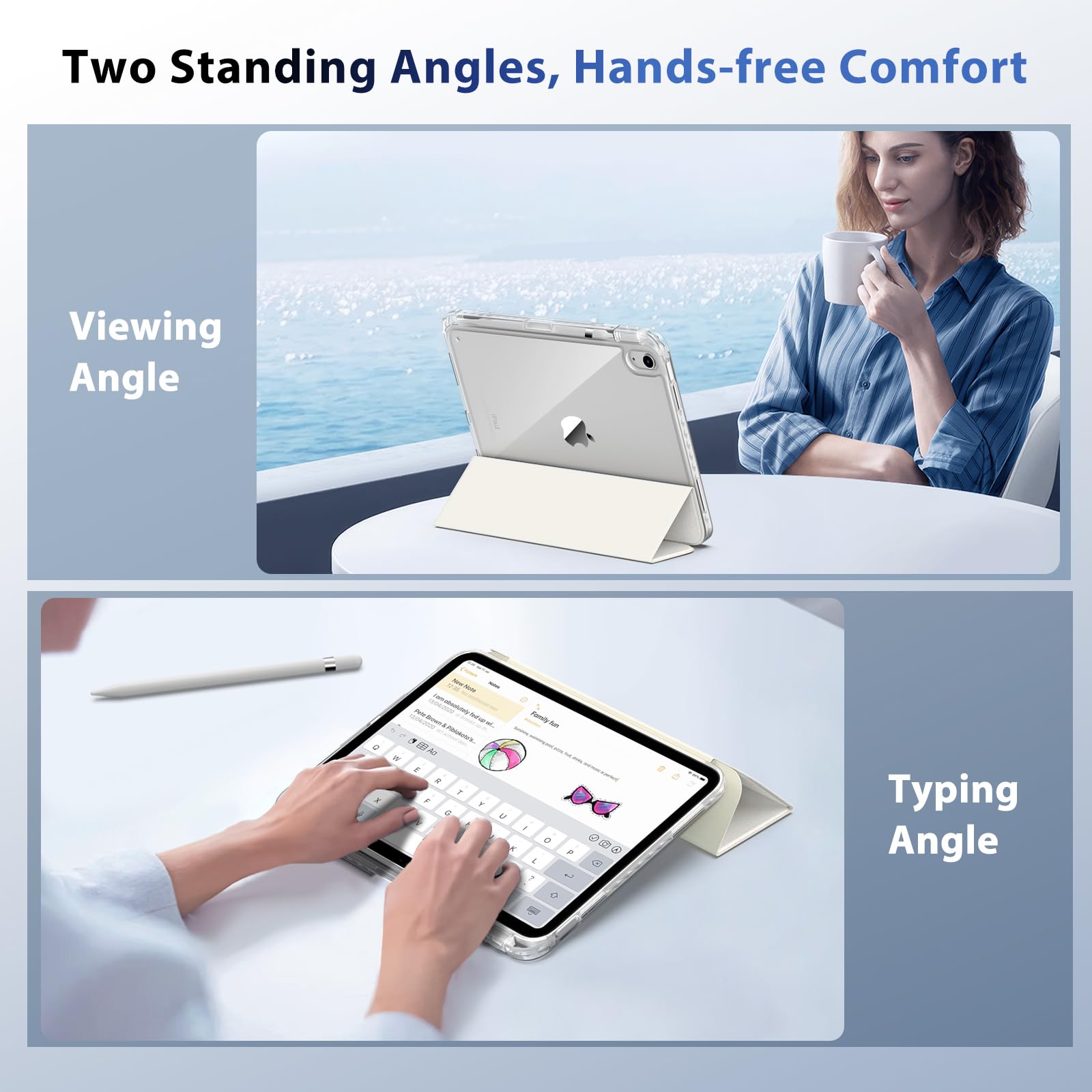 Functional Magnet: Internal magnets ensure the auto sleep/wake function works well, while ensuring the front lid folds into a triangle, allowing 2 different positions to enjoy hands-free reading, viewing, typing, and making FaceTime calls