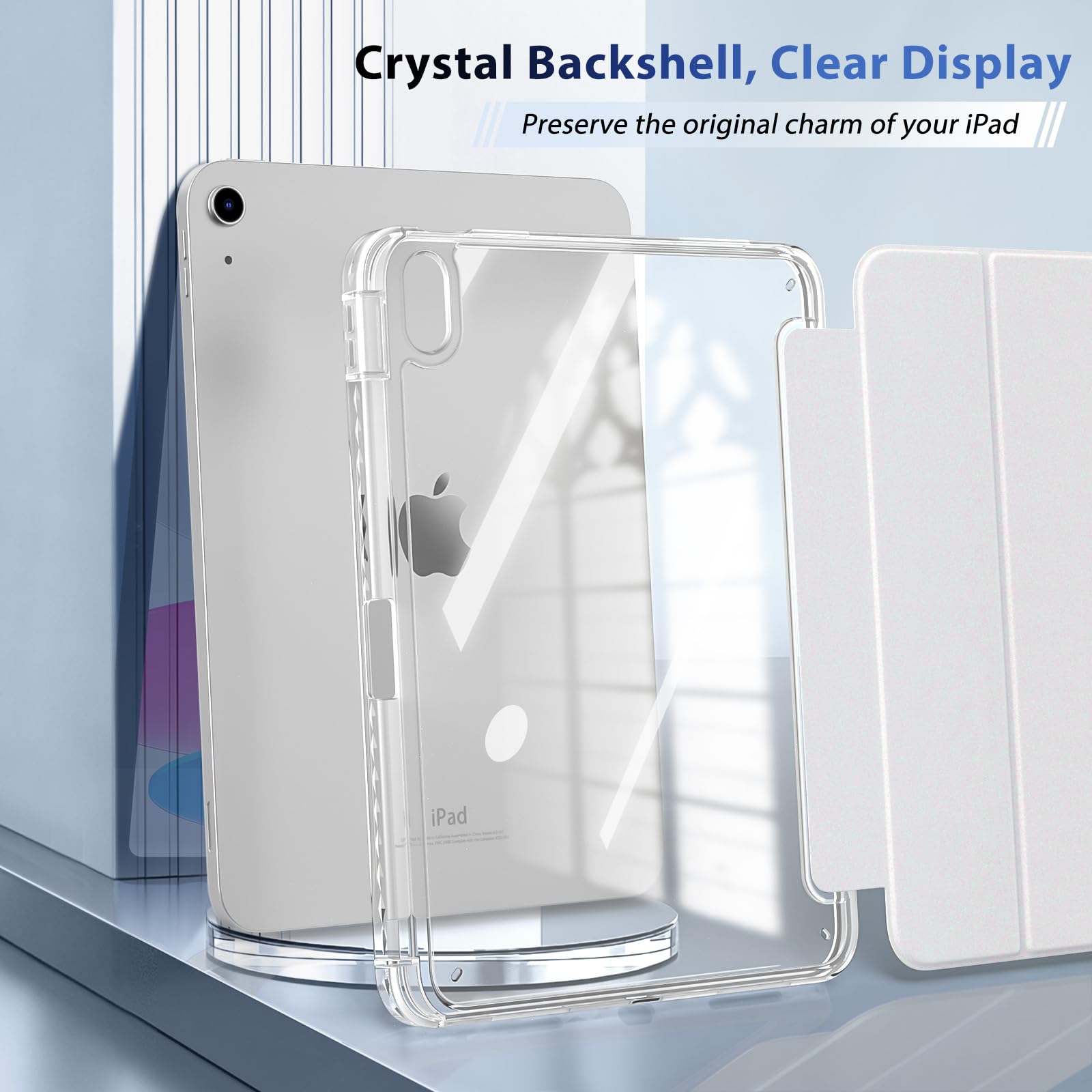 Clear Back Cover: The PC back is crystal clear to show the original color and personalized engraving of your ipad 10th Generation. Note: Please remove the inner and outer film before putting on this protective case
