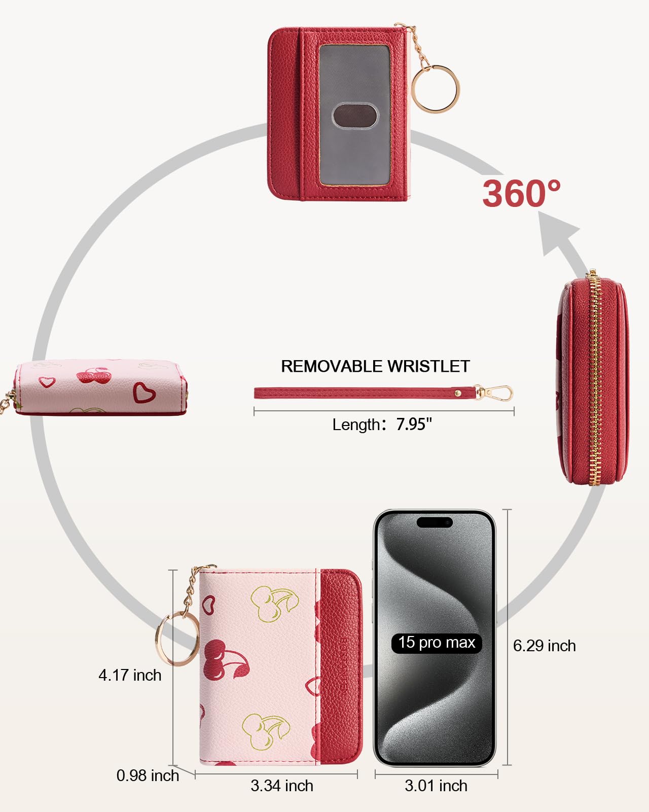 Perfect Size and Compact: Size 4.17'' x 3.34'' x 0.98'' inches, net weight 0.22 lbs. It is a palm-sized compact leather card holder and fits nicely into small bags or purses. Our card wallet has a hooked wrist strap to help you easily find it and free up your hands. The keychain you attached your keys to it and haven’t misplaced your keys yet one less thing to grab in the morning. So you can quickly throw it in your pocket and run to the store.