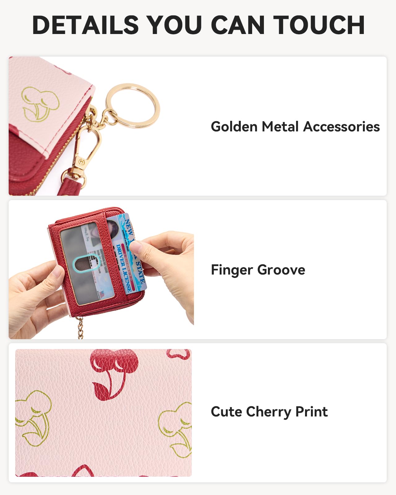 High Quality Vegan Leather: This ID card holder is crafted from soft and supple hand-feeling top-quality vegan leather, durable and sturdy. The zipper of the credit card holder for women has been tested tens of thousands of times and is extremely smooth and never gets stuck. The upgraded fabric lining is more wear-resistant and not easily deformed. The quilted design makes this small wallet even more unique.