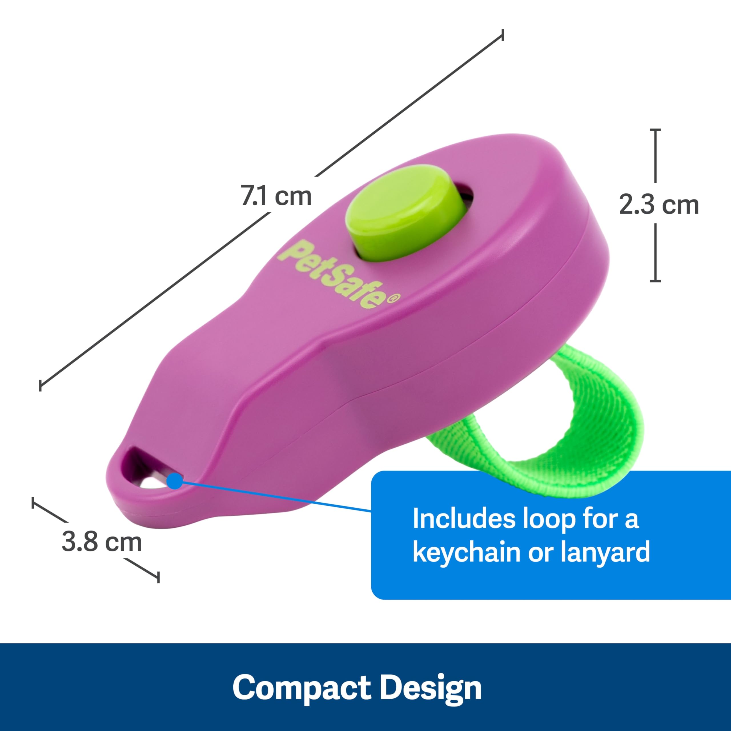 Train your pet effectively and positively with the PetSafe Clik-R Training Tool, a compact and easy-to-use device that uses the power of consistent sound to shape behavior. Whether you’re teaching basic obedience, new tricks, or advanced agility cues, the clicker creates a clear communication signal between you and your pet. With just one click, your pet knows they’ve done the right thing—followed immediately by a reward to reinforce that behavior. This sound cue pet trainer is perfect for dogs, cats, and other trainable animals. The compact shape fits easily in your hand, and the built-in finger band ensures it stays put during training sessions. Its easy-hold construction makes it a favorite among pet parents and professional trainers alike, offering comfort and control in every interaction. Whether you’re practicing indoors or heading to the park, this portable dog clicker is the lightweight, travel-friendly clicker you can rely on. Clicker training works by building an association between the click sound and a treat or praise. Pets quickly learn to anticipate a reward when they hear the click, making it easier to reinforce desirable behaviors and discourage unwanted ones. The PetSafe Clik-R can be used as early as 8 weeks old for puppies and is equally effective for adult pets. Since 1988, PetSafe has been driven by a simple belief: safe, healthy pets lead to happier lives for pets and their families. For over 25 years, we've been dedicated to enhancing the lives of pets and the people who love them, treating every pet as a cherished family member and delivering life-changing innovations designed to enrich every moment. With U.S. roots and a global reach, our vet- and trainer-recommended products are built for every pet and backed by exceptional customer support. From backyards to dog parks, we're on a mission to create fields of joy for happy, healthy, and safe pets.