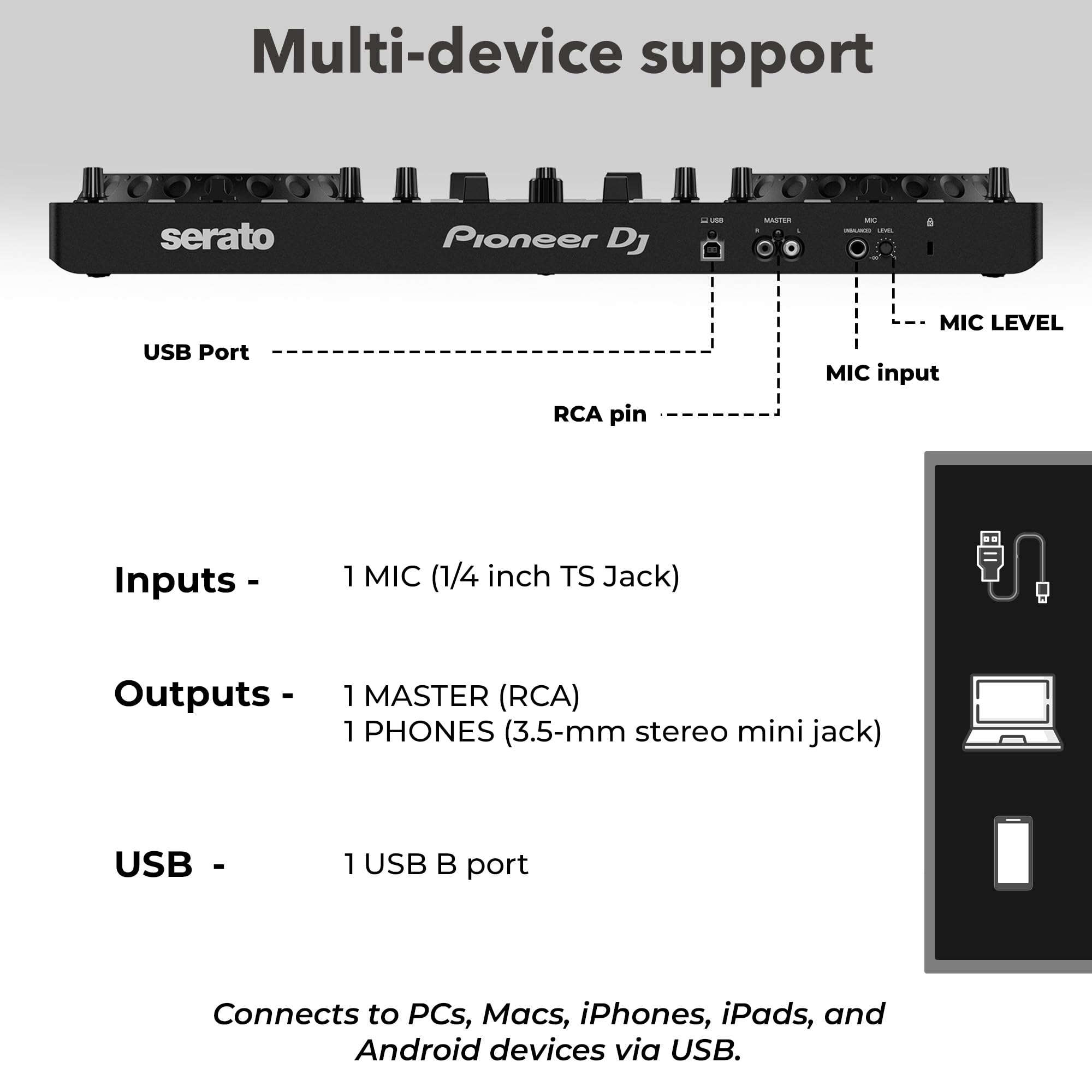MIXED MICROPHONE AUDIO: For the first time in a Pioneer DJ controller at this level, the output of the master audio is mixed with the sound from the microphone if you have one plugged in. This means you don't need any external equipment such as a soundcard or separate mixer if you want to add speech or vocals to your performance and route it through your computer. All sounds are sent to Serato DJ Lite so you can stream from there.