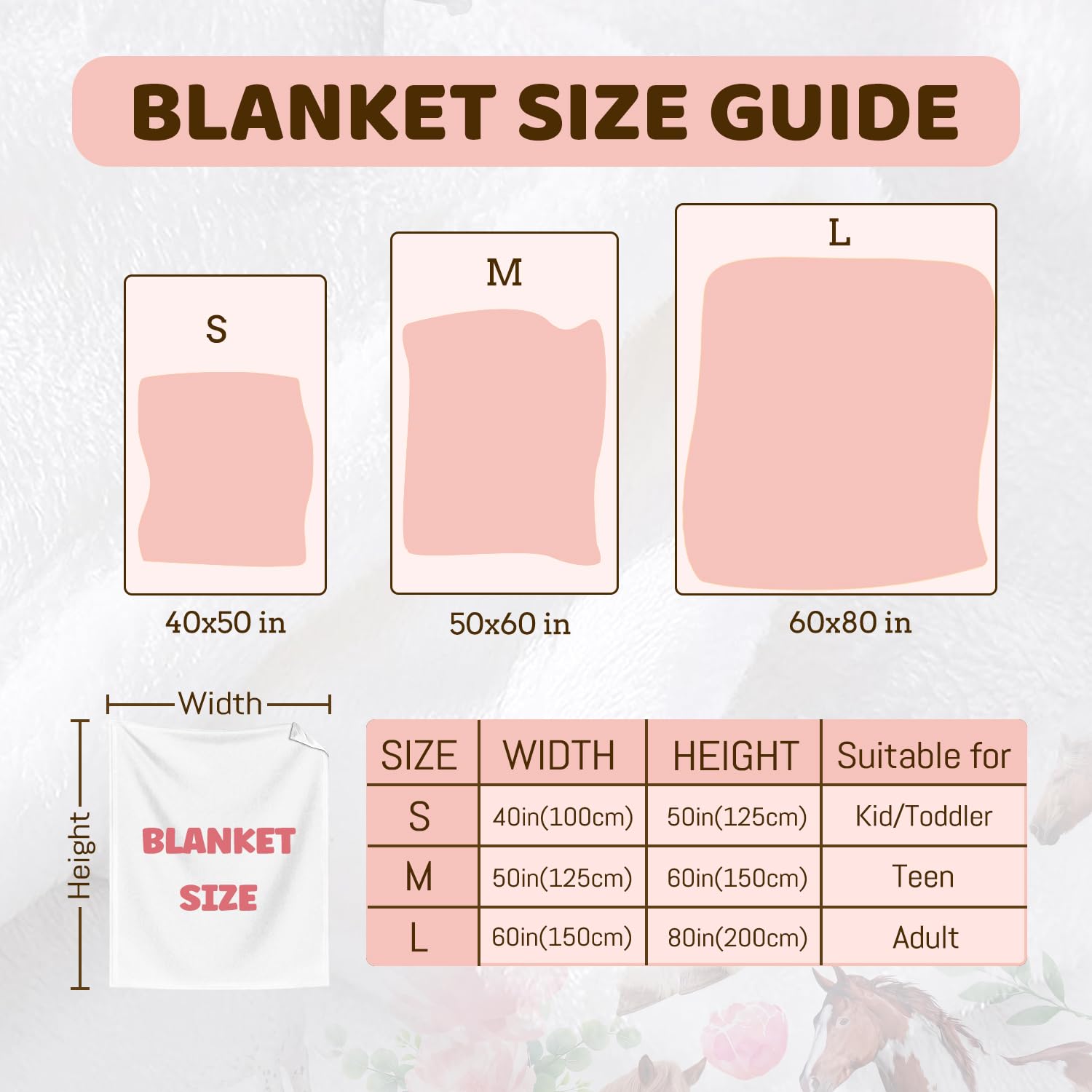 3 SIZES BLANKET YOU CAN CHOOSE-This cozy horse blanket comes in three sizes to suit everyone's needs: 40x50 inches (100x125 cm) - perfect for kids boys and girls, 50x60 inches (125x150 cm) - great for travel or teens, and 60x80 inches (150x200 cm) - ideal for adults or twin beds. Lightweight yet warm, it's easy to fold and store when not in use, making it a practical choice for any season.