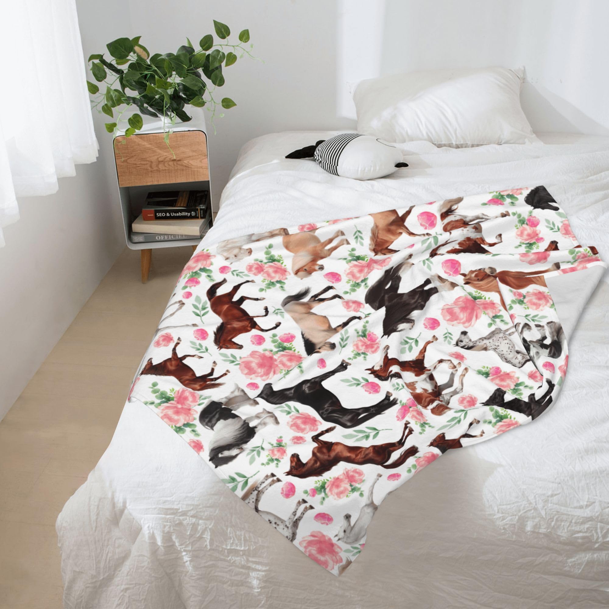 Horse Print Flannel Blanket - Ultra Soft & Lightweight for All Seasons (3 Sizes Available) This adorable horse-themed flannel blanket is the perfect gift for animal lovers of all ages! Made from premium lightweight polyester flannel fabric, it offers the ideal balance of softness and warmth without bulk, making it perfect for year-round use. The cute horse patterns stay crisp and colorful wash after wash. Super soft material for your comfort. Why You'll Love It: ✔ 3 SIZES BLANKET WE CAN CHOOSE 40x50 inches(100x125cm)ideal for kids toddler girls boys 50x60 inches (125x150cm) great for camping travel teens 60x80 inches (150x200cm) perfect for adults twin beds ✔ Feather-Light Yet Cozy - Soft flannel material provides just the right warmth for naps, studying, or movie nights ✔ Multi-Use Design - Great for dorm rooms, offices, car rides, camping trips, or as charming bedroom decor ✔ Easy Care - Machine washable (cold water recommended) and tumble dry low - maintains softness and color vibrancy ✔ Thoughtful Gift - Perfect birthday, Christmas, or Halloween present for daughters, sons, teens, and all horse lovers Whether you're cuddling on the couch, taking a study break, or needing an extra layer on chilly nights, this horse print throw blanket delivers comfort and style. The breathable flannel fabric ensures you stay comfortably warm without overheating. Kids love wrapping it around their shoulders during playtime, while adults appreciate its compact foldability for storage.