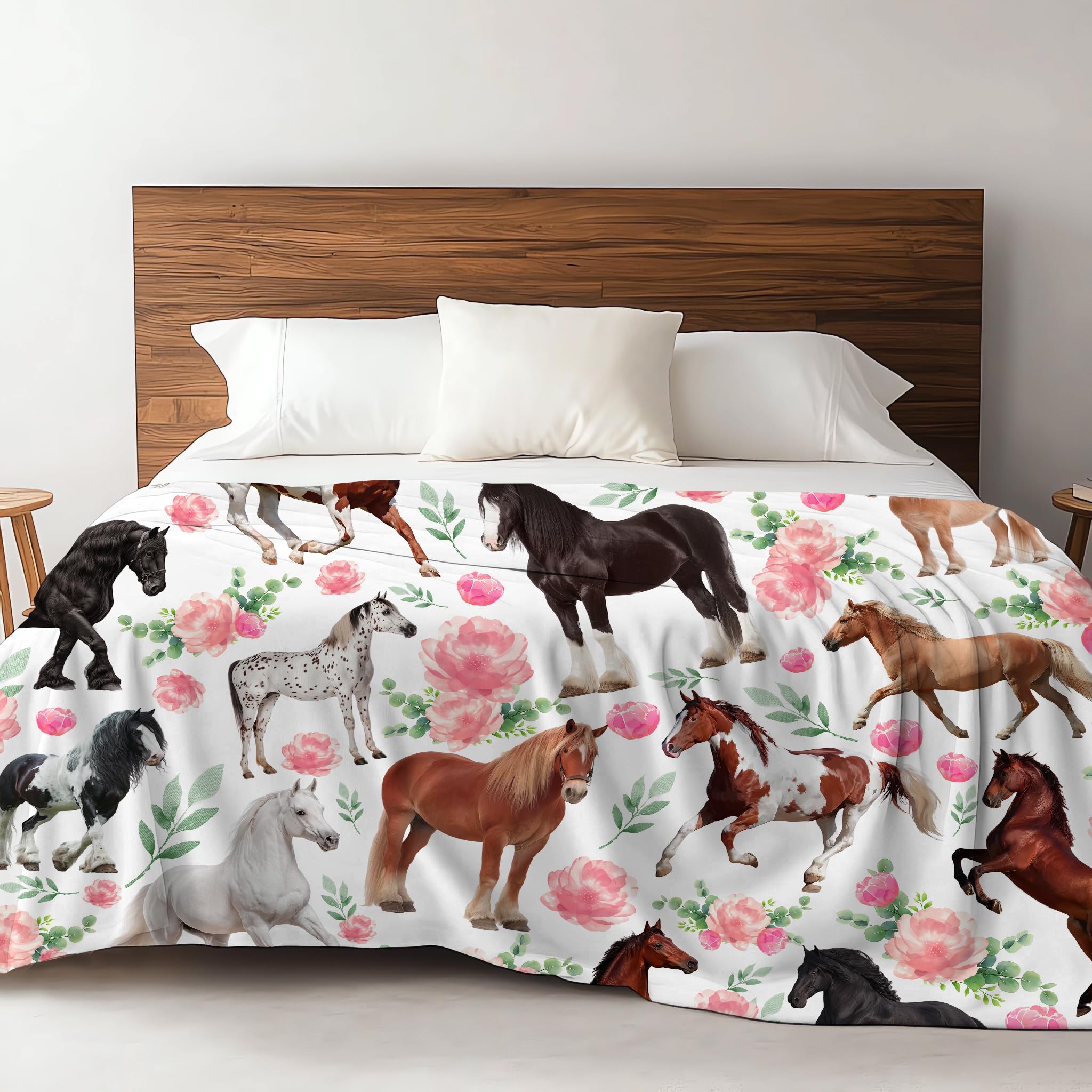 VERSATILE USAGE-This adorable horse print blanket is your perfect companion - whether you're binge-watching shows at home, studying in your dorm, or out camping and traveling. Lightweight and easy to carry yet super cozy, it keeps you warm during library sessions or outdoor adventures. Kids love snuggling with it while teens use it as cute bedroom decor. From home to outdoors, for children to adults, this versatile blanket brings warmth and charm to every moment of your day.