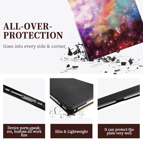 This protective case features a pre-cut opening for the rear camera, supporting 99% of camera usage scenarios; however, it does not support the auto-sleep/wake function for any tablets and lacks a keyboard storage design.