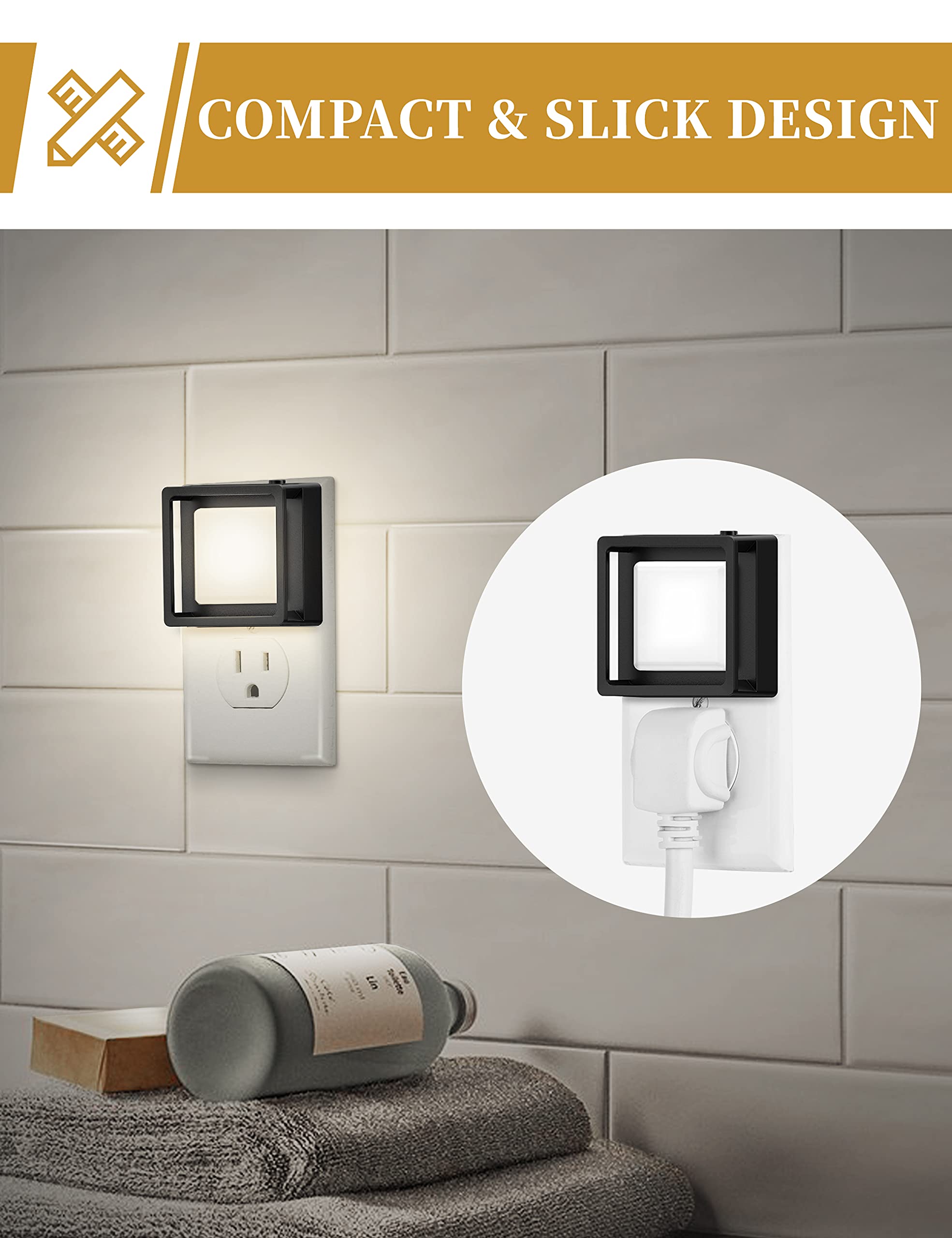 AUTO ON/OFF(NIGHTLIGHTS WITH LIGHT SENSORS): The LED night light sensor chip will detect the luminance of surrounding environment, make the night-lights turn on automatically at night and turn off in the daytime. Do not need to switch night lite on manually.