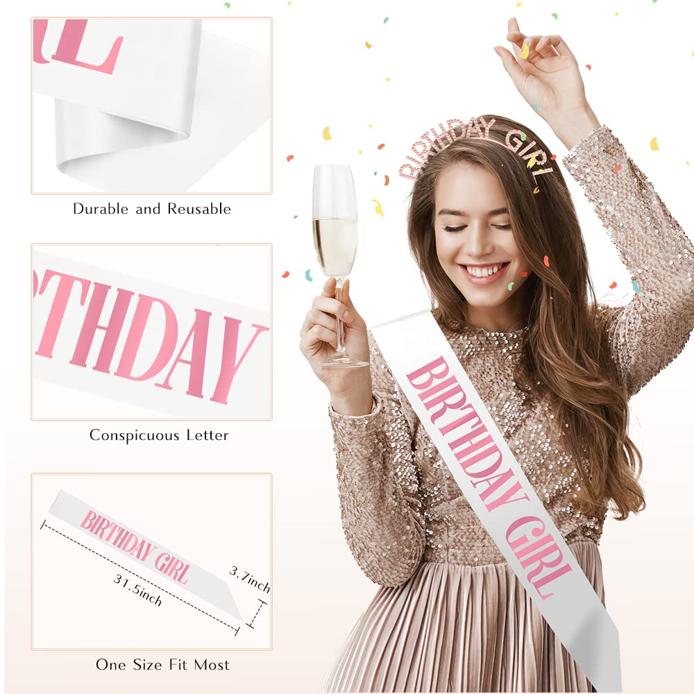 ✨【Happy Birthday Sash】Birthday sash measures 30 inches long by 3.7 inches wide. Available in satin and glitter fabric. Not easy to tear or wrinkle, keep beautiful all day long. The headgear weighs 1.5 ounces, comfortable to wear all day.