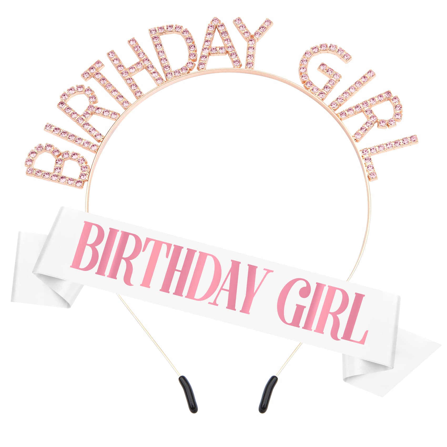 🎀【Birthday Decorations Gift】Birthday girl crown and sash, birthday girl crown adult. Birthday accessories gift for yourself, sister, female friend, mom, wife, aunt, grandma, let her be the princess and queen of the birthday party, create more happy atmosphere in the birthday party.