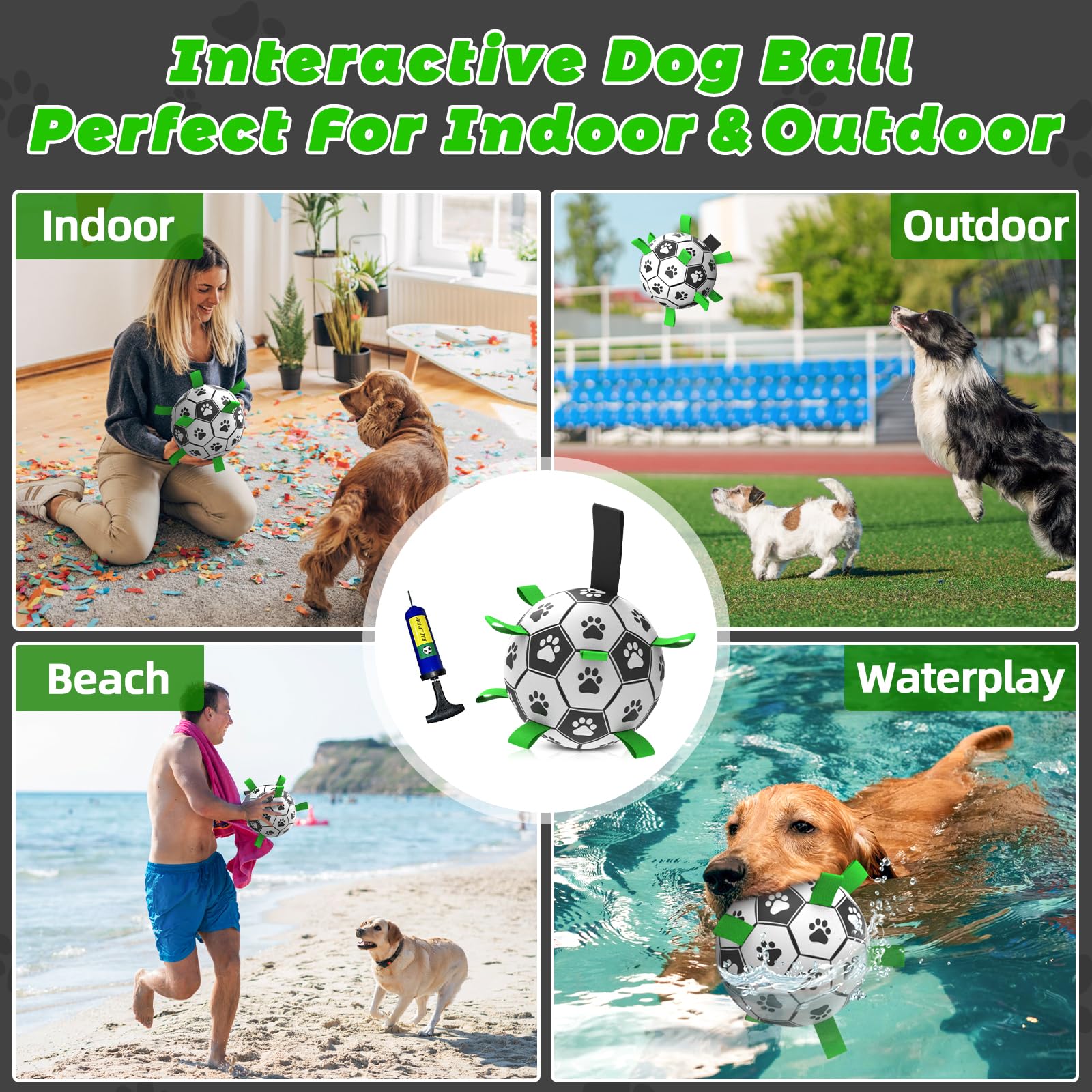 Dog Water Toys: Toy for dogs games can be played in lakes, pools, and on beaches thanks to the QDAN soccer ballfor dogs lightwelght, buoyant construction. The dog soccer ball with straps is meant to keep your dog enteriained.active and help human beings and dogs stay engaged, good for outdoor activity