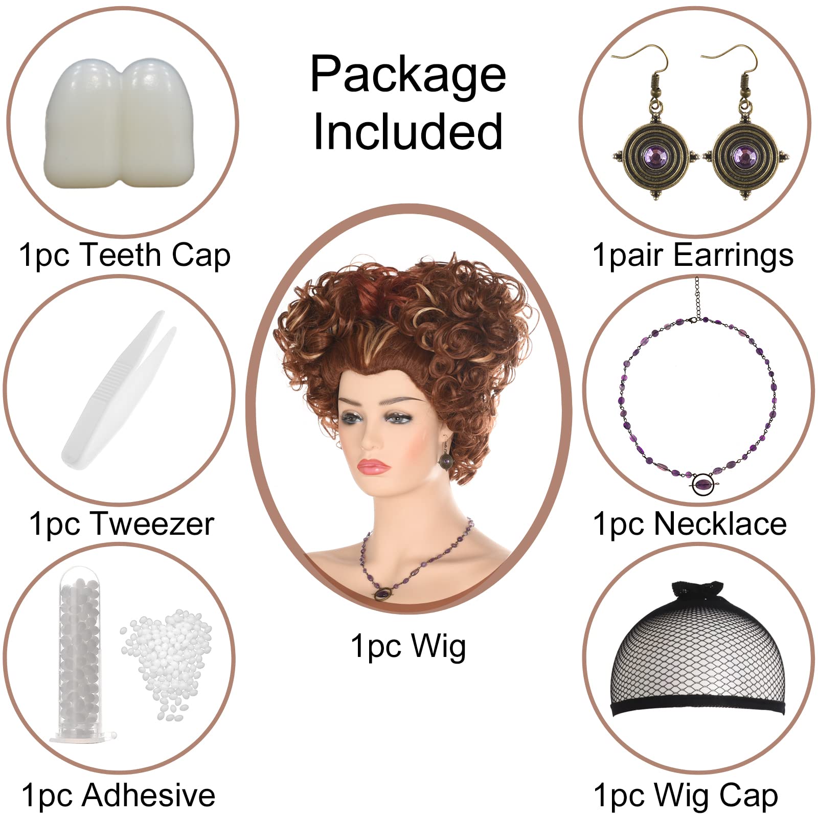 Package Included: Costume Wig * 1+ Necklace * 1 + A Pair of Earrings + Teeth Cap * 1+ Plastic Tweezer * 1 + Adhesive * 1 + Free Wig Cap * 1