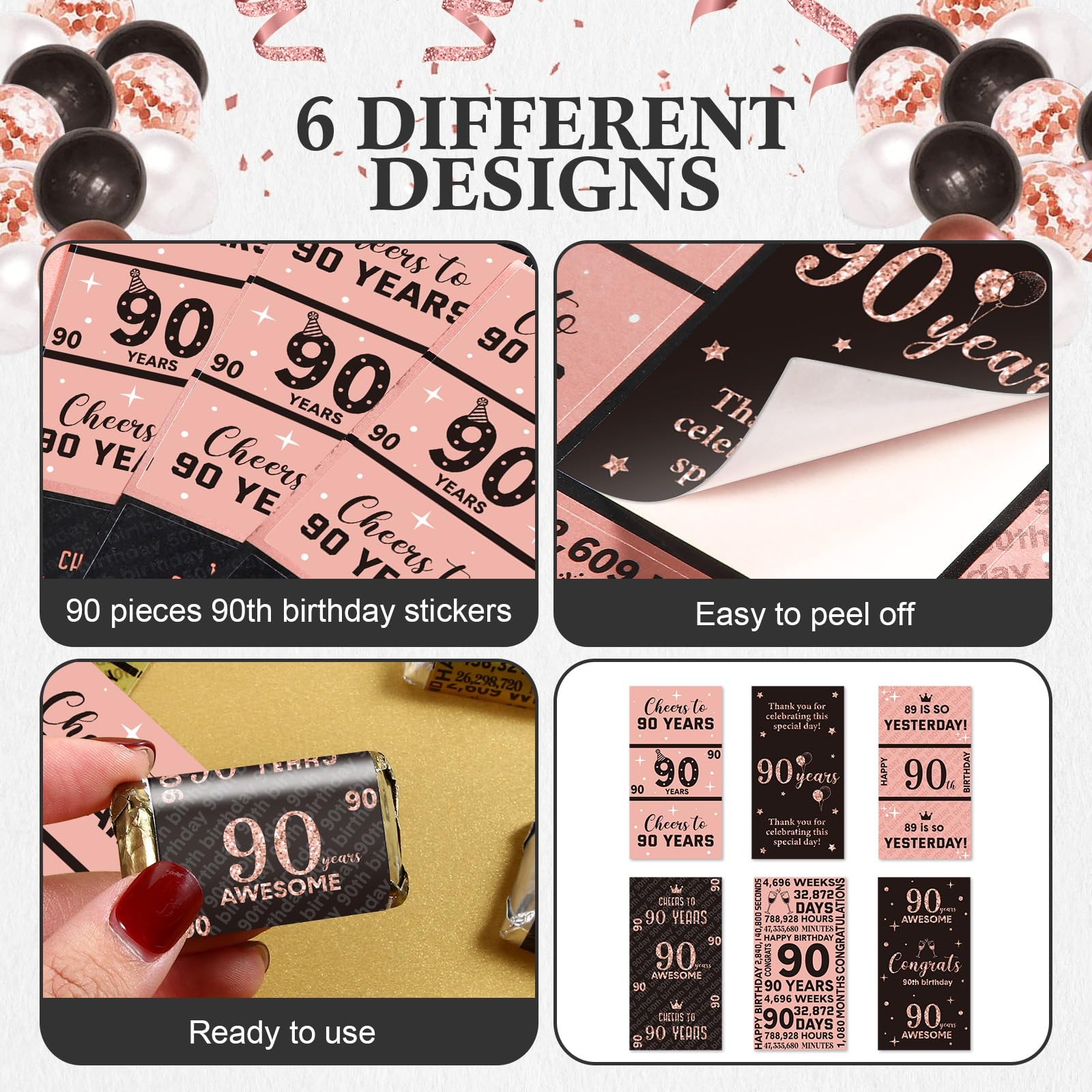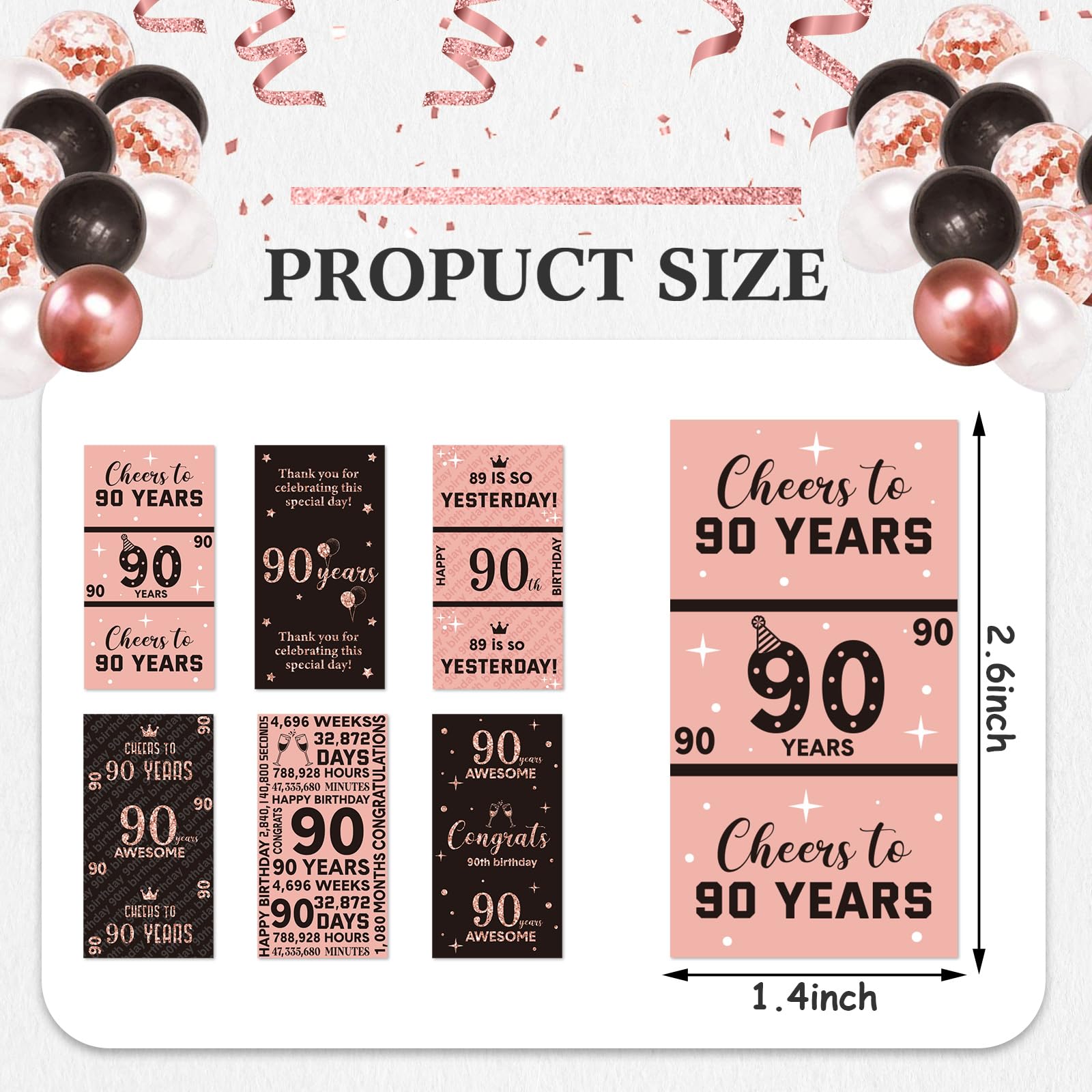 Thoughtful and harmless: these 90th birthday decoration label stickers are made of quality shiny adhesive paper, which is odorless and reliable, wear and tear resistant; They are very easy to be pasted and peeled without leaving residue, giving you a nice using experience