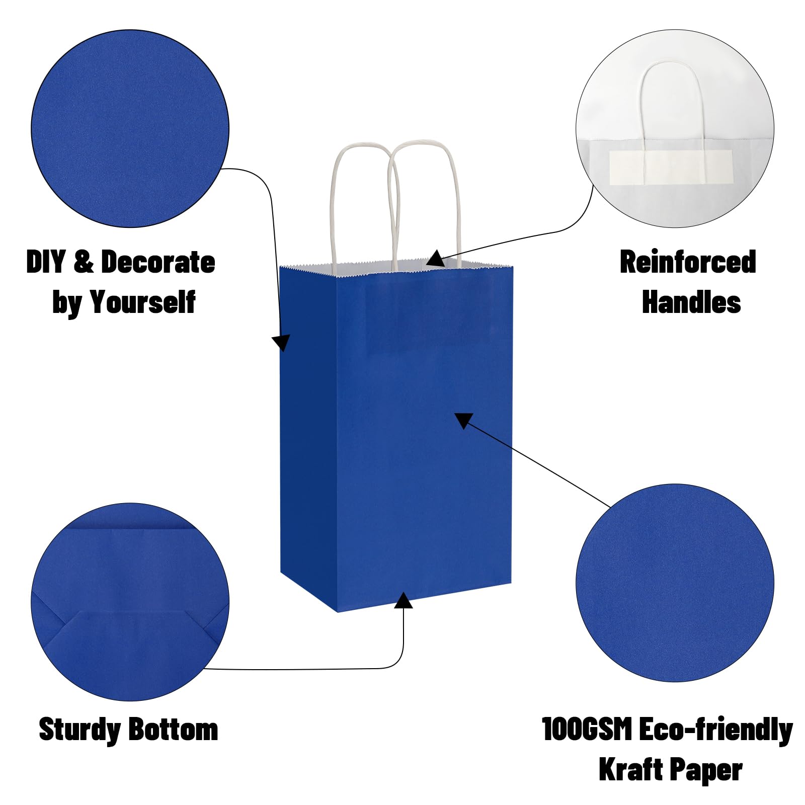 Rugged & Durable: This paper bags are made of 100 GSM kraft paper, which is more durable and can withstand a weight of 5 pounds, so you needn't worry about the risk of being torn.