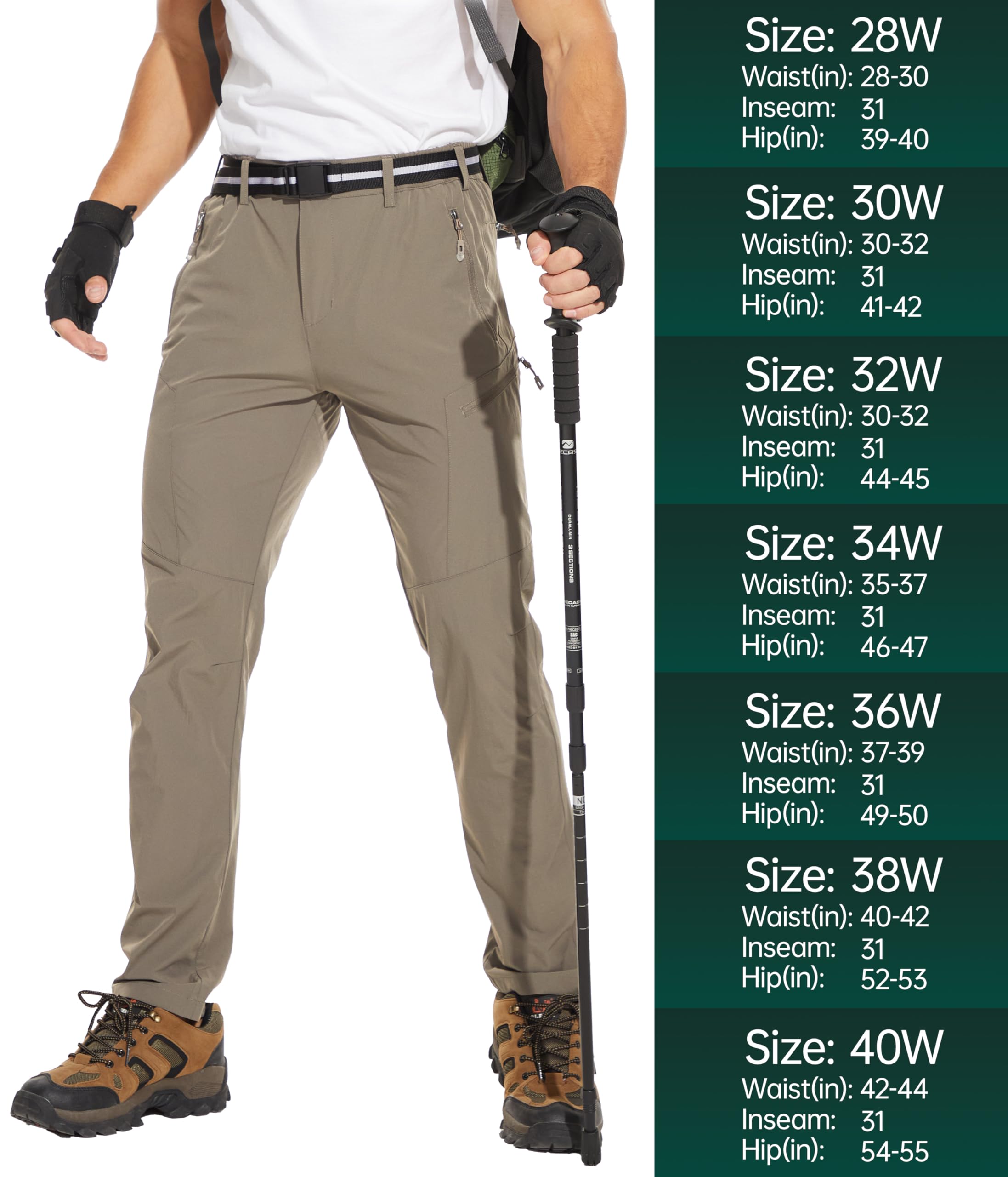 【Stretchy & Quick Dry Material】Our travel pants for men are made of durable material, which is 4-way stretch, quick dry and water resistant. No more annoyance of moisture when hiking with these waterproof hiking pants men