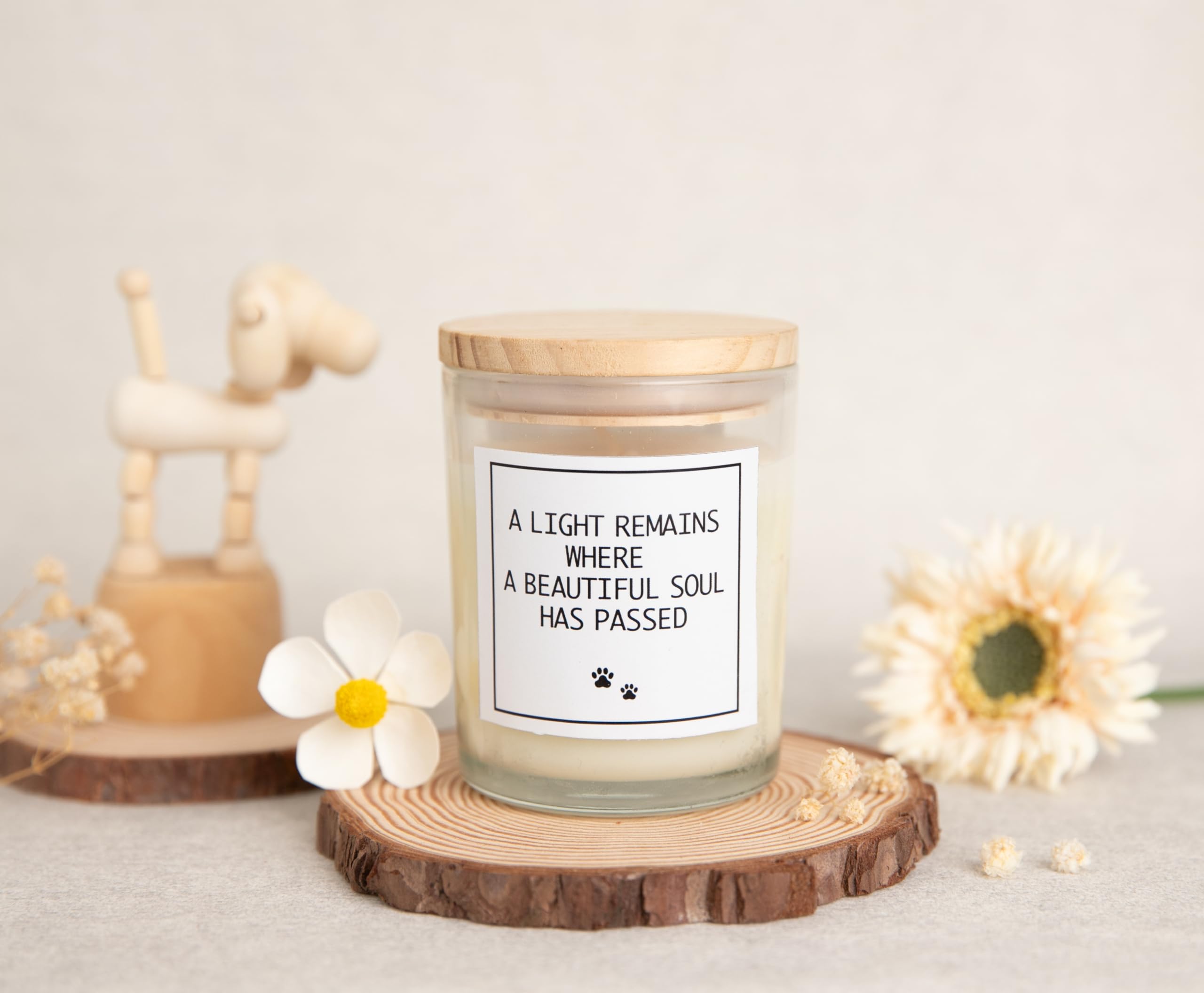 Pet Memorial Gifts - Designed to comfort those grieving the loss of pet, our pet memorial candle is a thoughtful and meaningful tribute gift - A LIGHT REMAINS WHERE A BEAUTIFUL SOUL HAS PASSED.