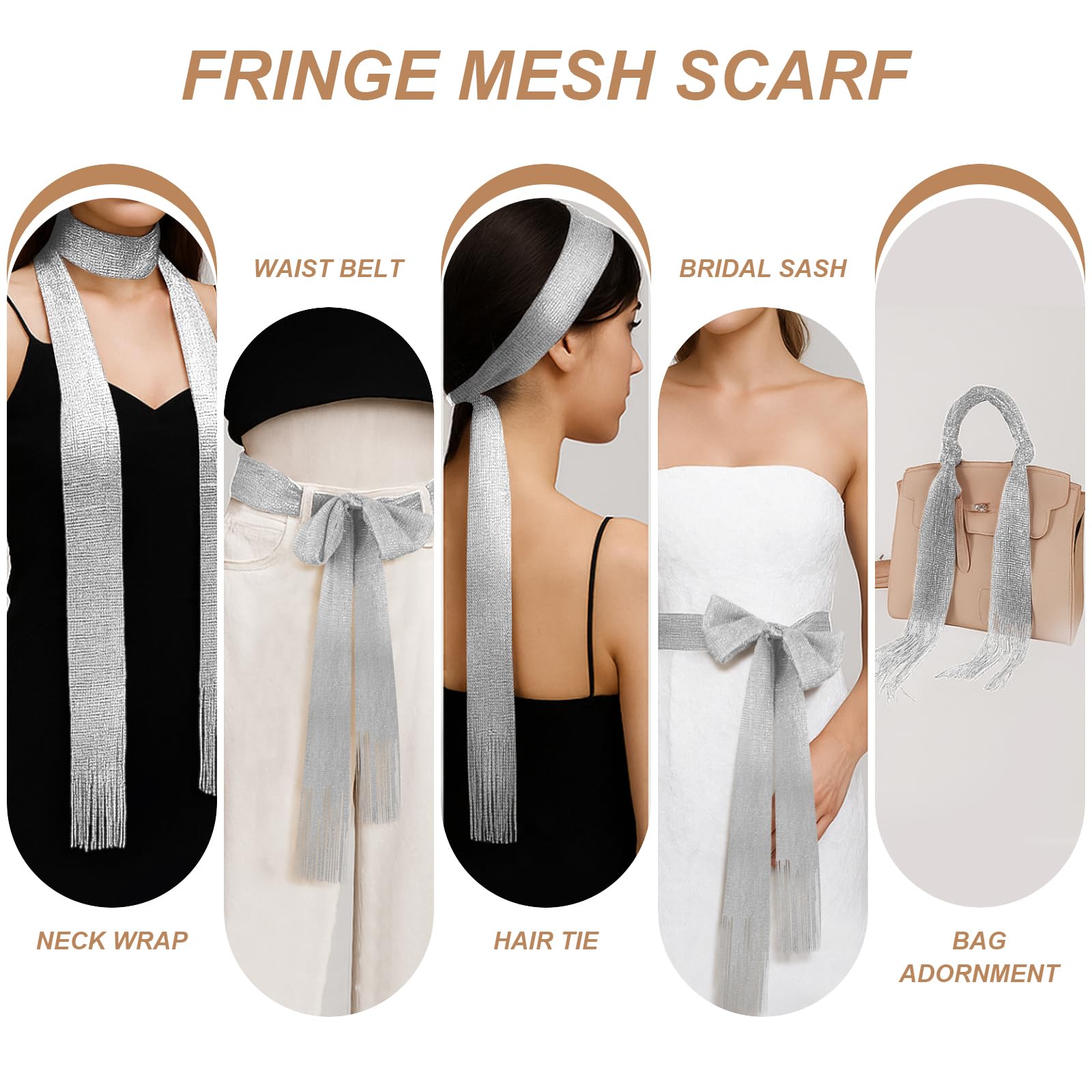 Description This fringe mesh wrap is the ultimate all-in-one accessory, effortlessly transforming into a waist belt, skirt belt, long head scarf, handbag ribbon, or trendy decorative belt. Whether you're going for a coachella head scarf, a gold scarf belt, or a retro 70s-inspired look, this piece adapts to your personal style and vibe. With a generous 78.7-inch length, it wraps comfortably around all body types—from petite to plus size. It works beautifully as a cowgirl belt, western belt for dresses, or a hip belt for women looking to add flair to jeans, skirts, or summer outfits. Crafted from lightweight polyester silk and metallic gold thread, this breathable mesh wrap feels soft against the skin while offering just the right touch of shimmer. Its airy texture makes it ideal for both everyday wear and layering on special occasions. Inspired by Y2K, boho, and western fashion, it pairs seamlessly with cowboy belts, concho belts, or a classic women’s western belt. Whether you're dressing up for a festival, beach party, concert, or casual day out, it elevates your look with effortless charm. Lightweight, versatile, and easy to pack, this is a thoughtful gift for fashion lovers who collect scarves for women, enjoy trendy belts, or want a country-inspired accessory with modern appeal.