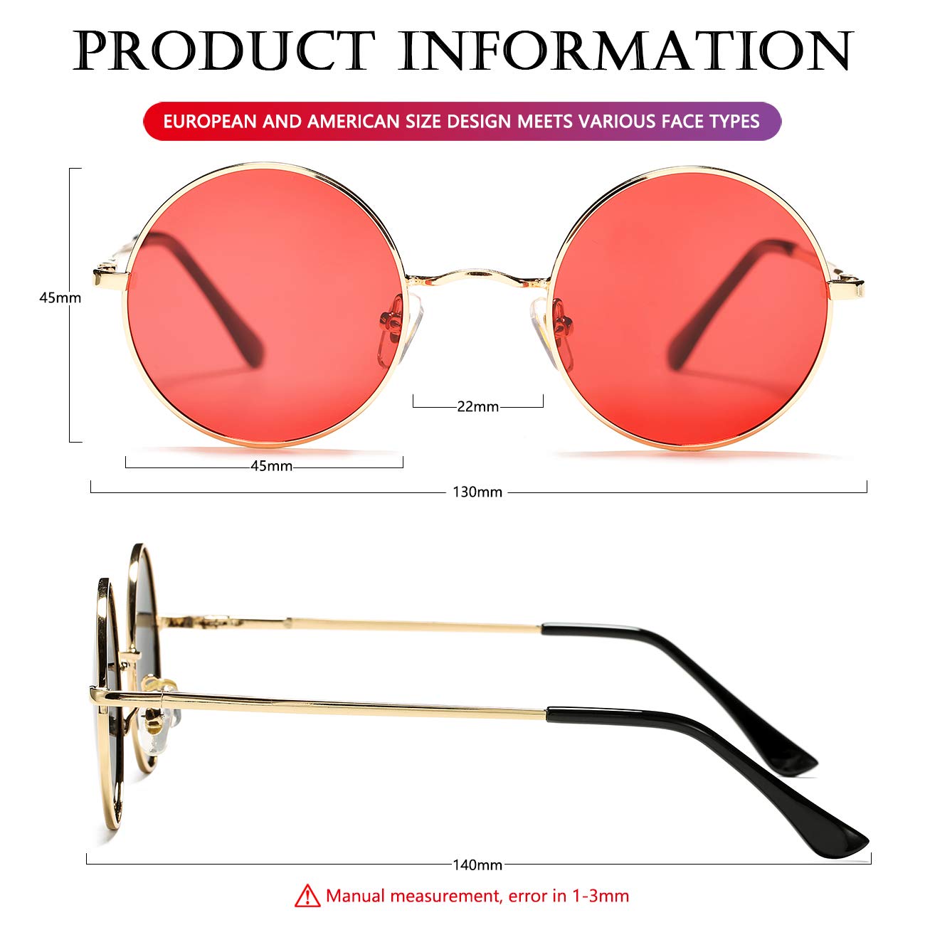 VINTAGE ROUND METAL FRAME ►Ergonomic design frame, a curved brow bar, reinforced metal hinge, adjustable nose pads, durable metal flexible spring hinges temples, classic design make these small round sunglasses for men and women more comfortable and durable while you are wearing.