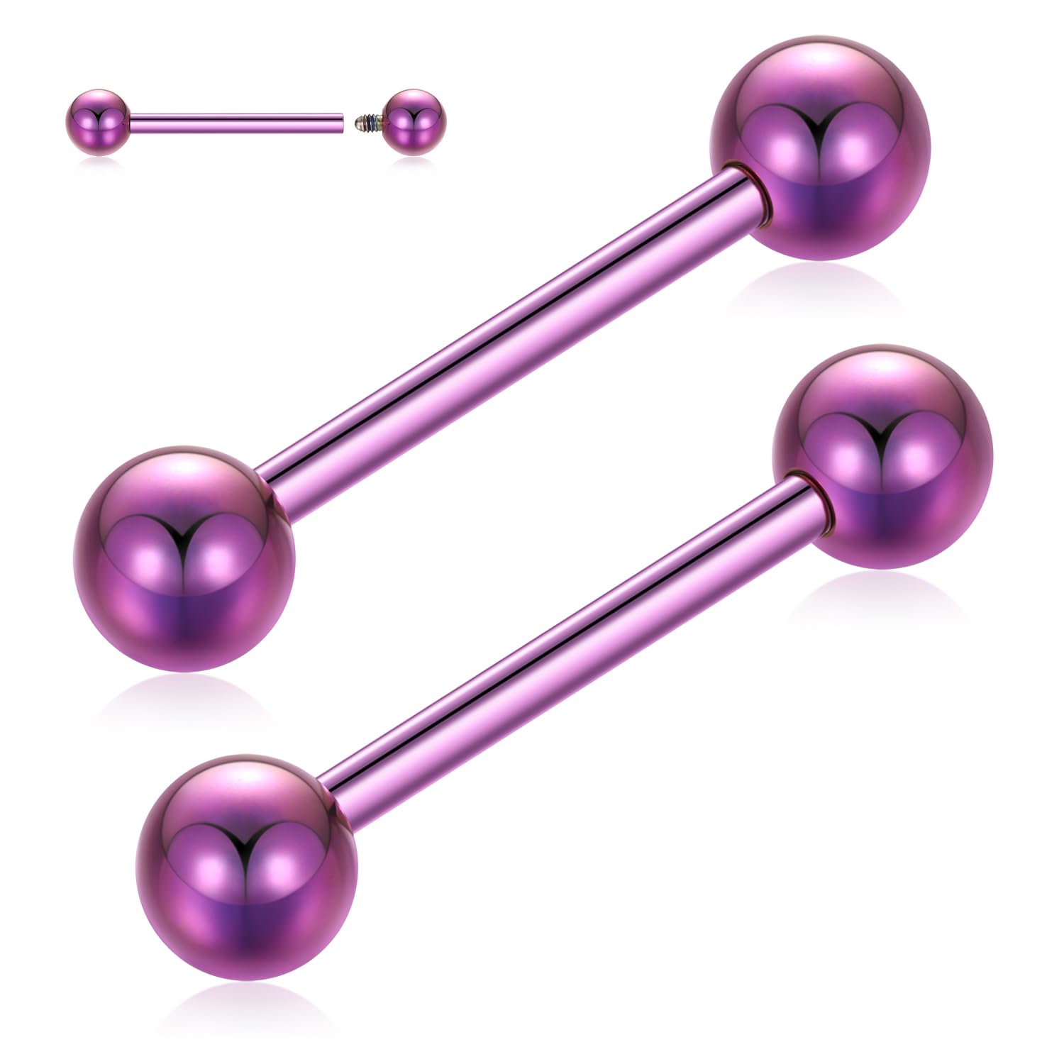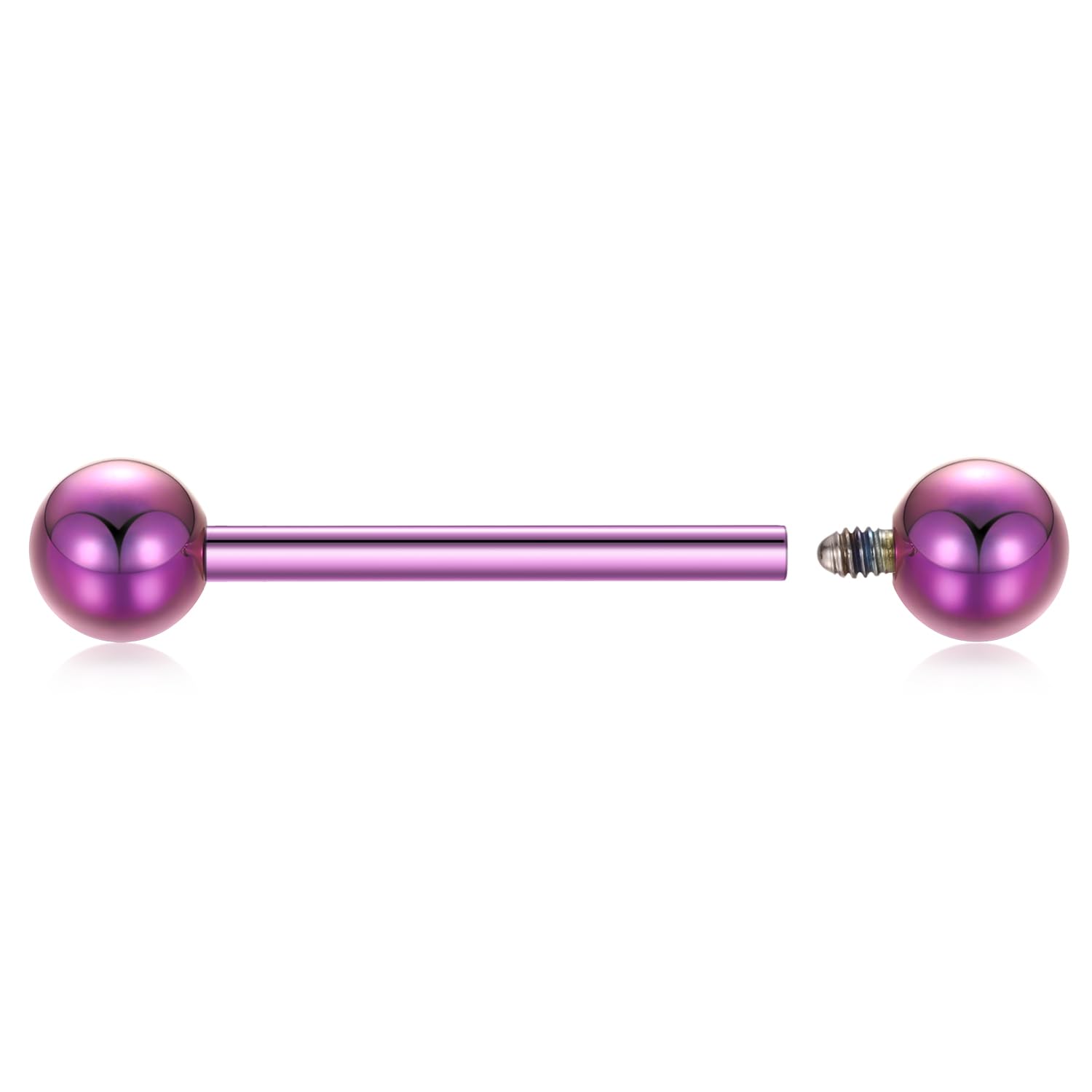 Straight Nipple Ring Size: 14 G (1.6 mm); Bar Length: 14 mm; Ball Size: 5 mm; Color: purple