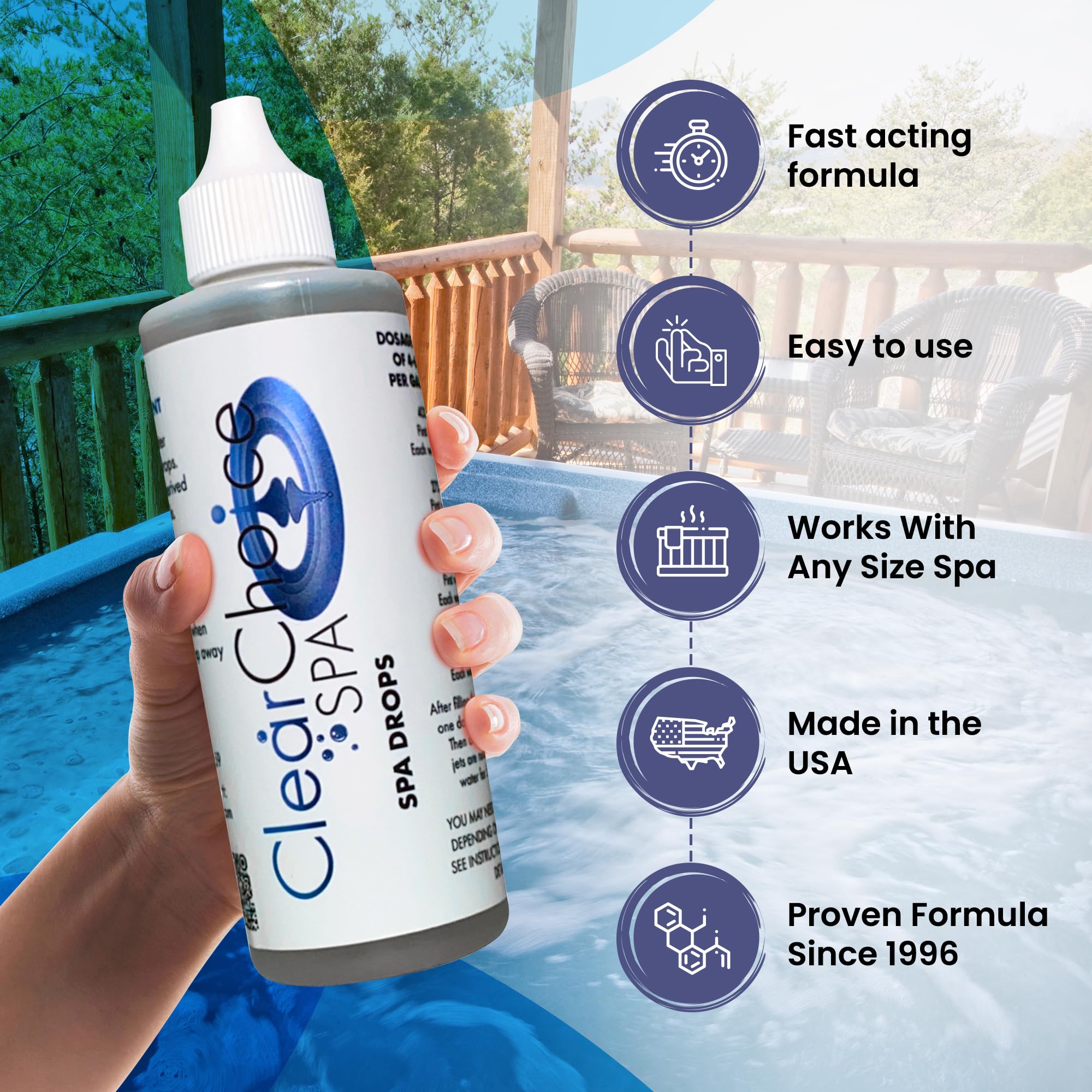 NATURAL & EFFECTIVE WATER PURIFICATION: Clear Choice Spa Drops utilizes 100% natural enzymes and surfactants to provide an eco-friendly, chemical-free solution for your hot tub water treatment, effectively breaking down organic waste to maintain clean and clear water through Bio-Oxidation.