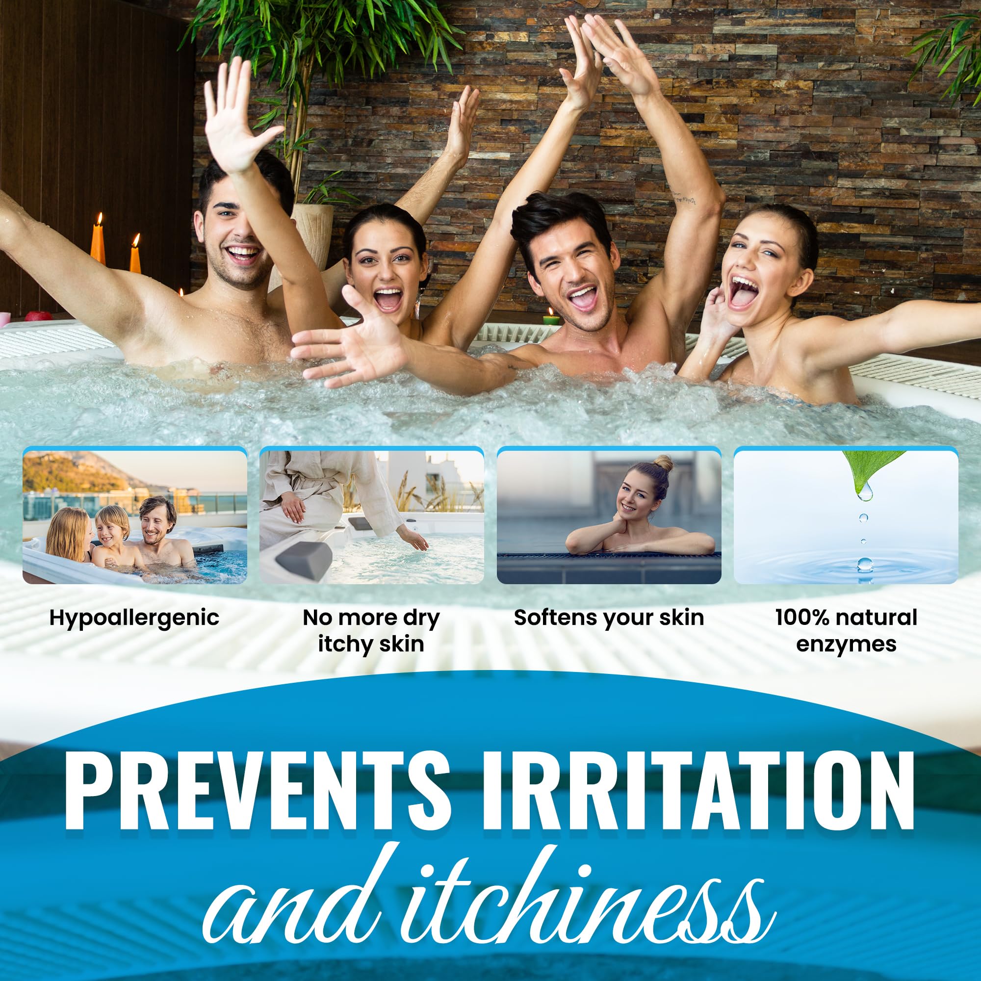 CHEMICAL-FREE & HYPOALLERGENIC: Formulated without any harsh chemicals. This non-toxic hot tub cleaner is gentle on the skin, helping to prevent skin irritation, burning eyes, and itchiness often associated with traditional treatments containing chlorine or bromine.