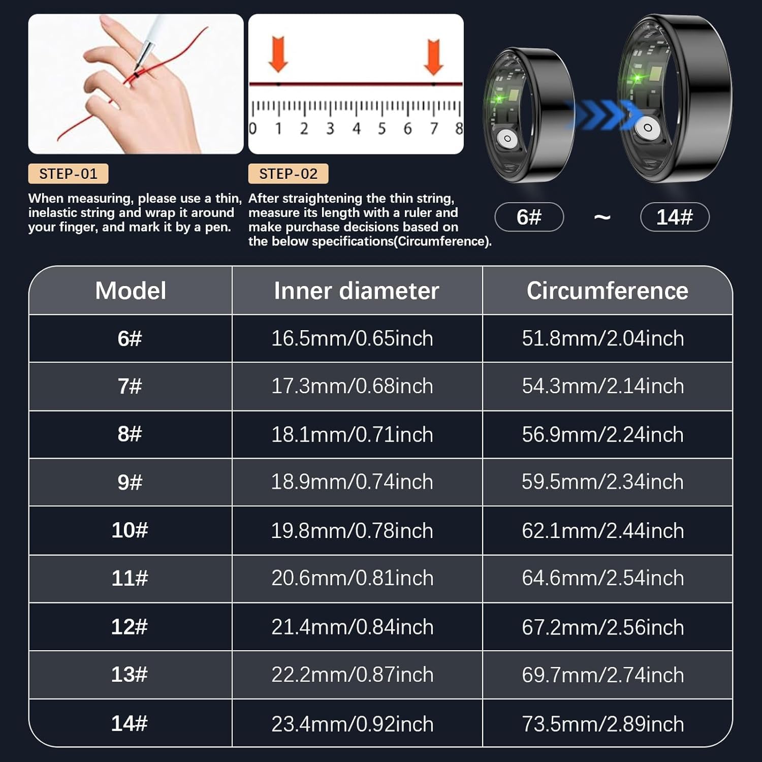 ⭐【Size Before You Buy】The KNGAD Smart Ring follows U.S. ring sizing standards. If you already know your U.S. ring size, you can order the health tracker ring in that same size. If you don’t know your U.S. ring size, we strongly recommend checking the U.S. ring size guide, measuring your finger circumference, and using that to determine your perfect fit.