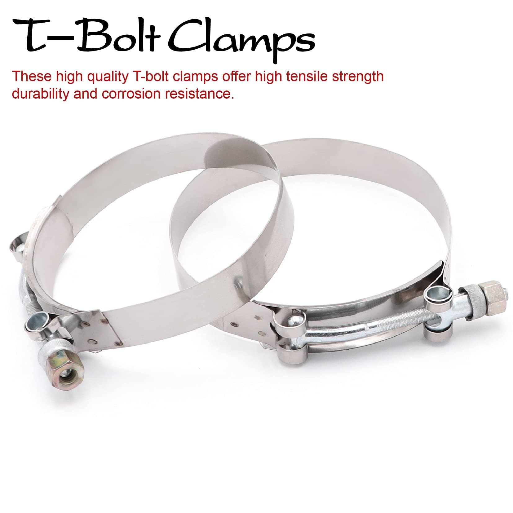 The silicone hose is made of high quality silicone, many sizes to choose with 2pcs Stainless Steel T-Bolt Clamp.