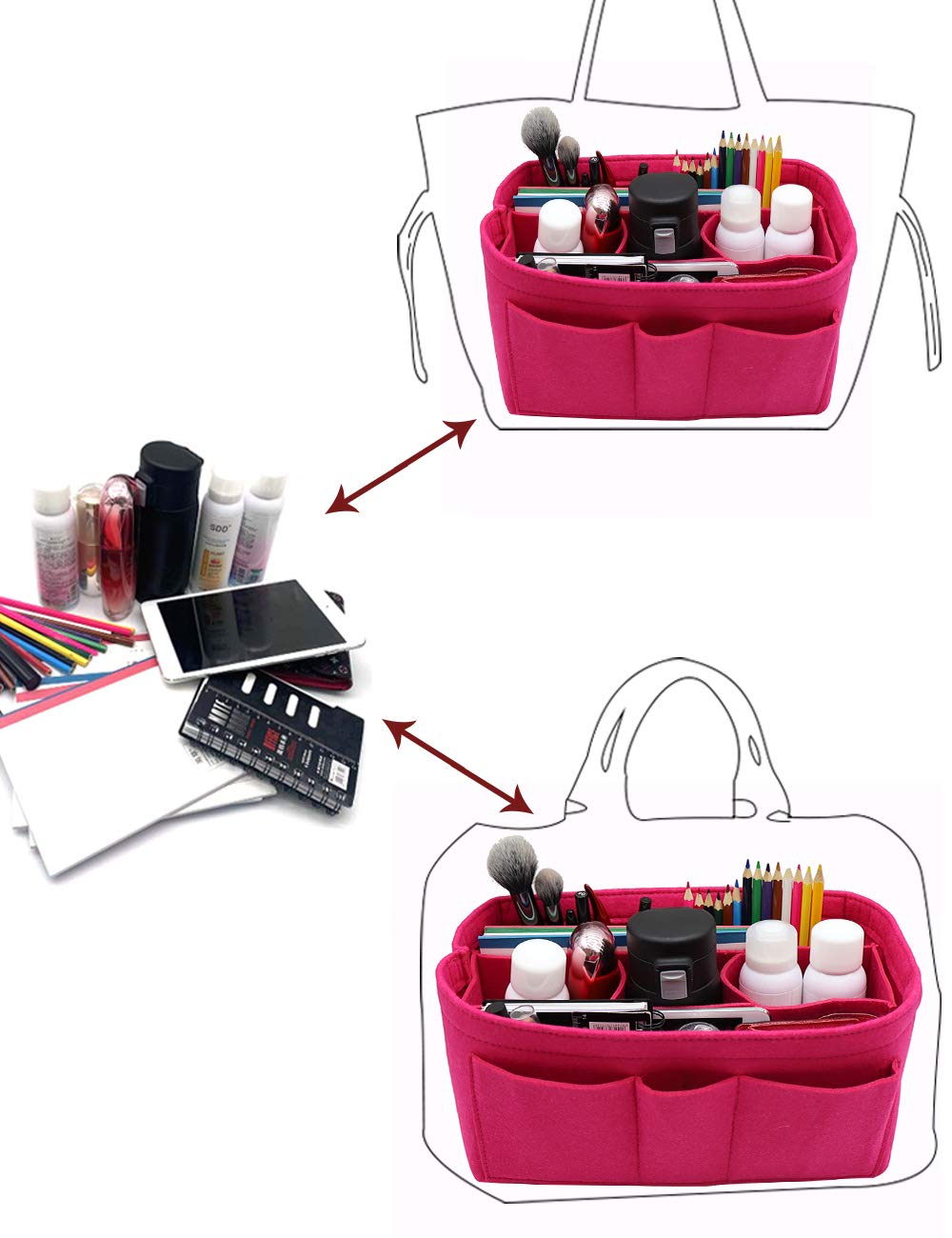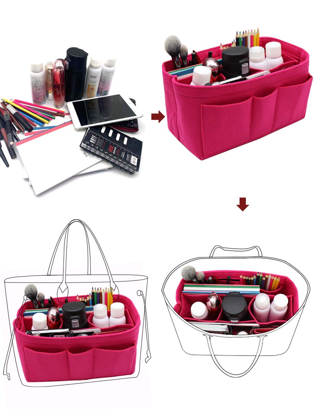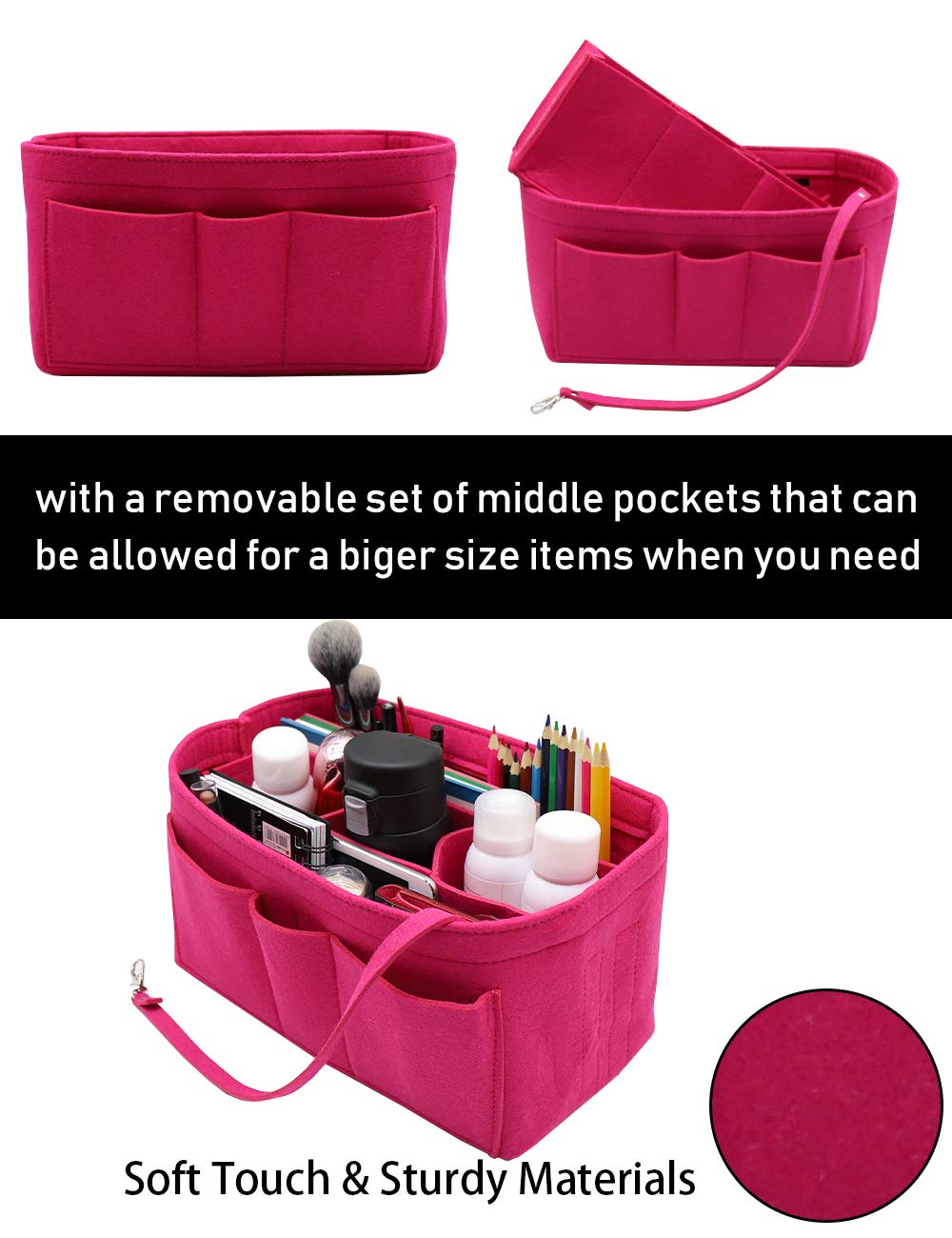 LIGHTWEIGHT & DURABLE---Strudy but Very Lightweight,Structured organizer bag in bag, Thick felt fabric better protect your items inside handbag.Fits for a variety of models handbags,Keep your Handbag shape and shipshape.