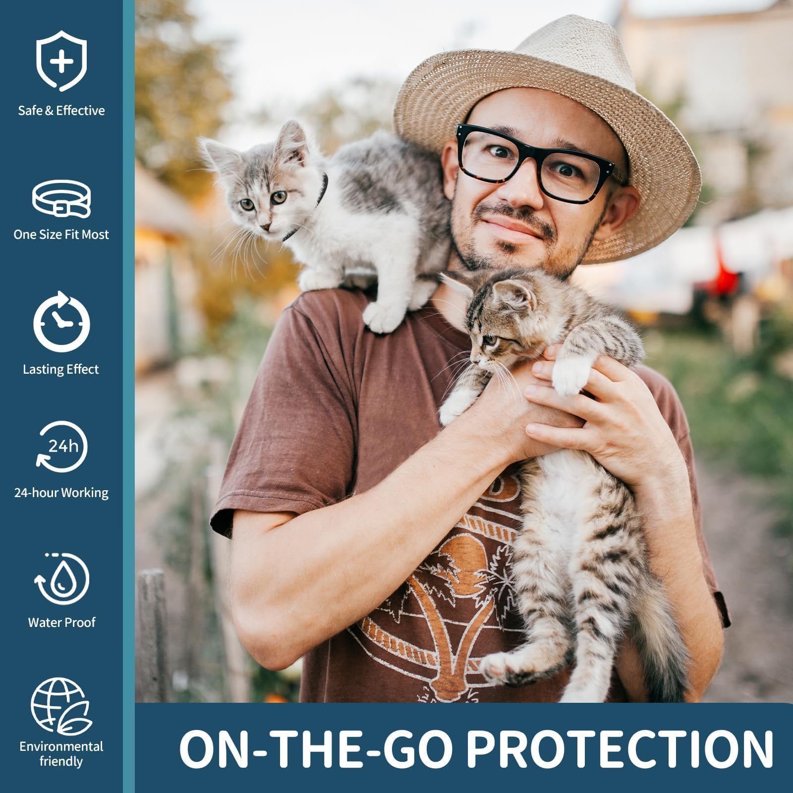 Non-Greasy & Water-Resistant:Our flea collar for cats are water-resistant, allowing your cat to enjoy baths, swims, or walks in the rain without worry. The non-greasy formula is easy to handle, leaving no residue on your cat's fur or your hands.