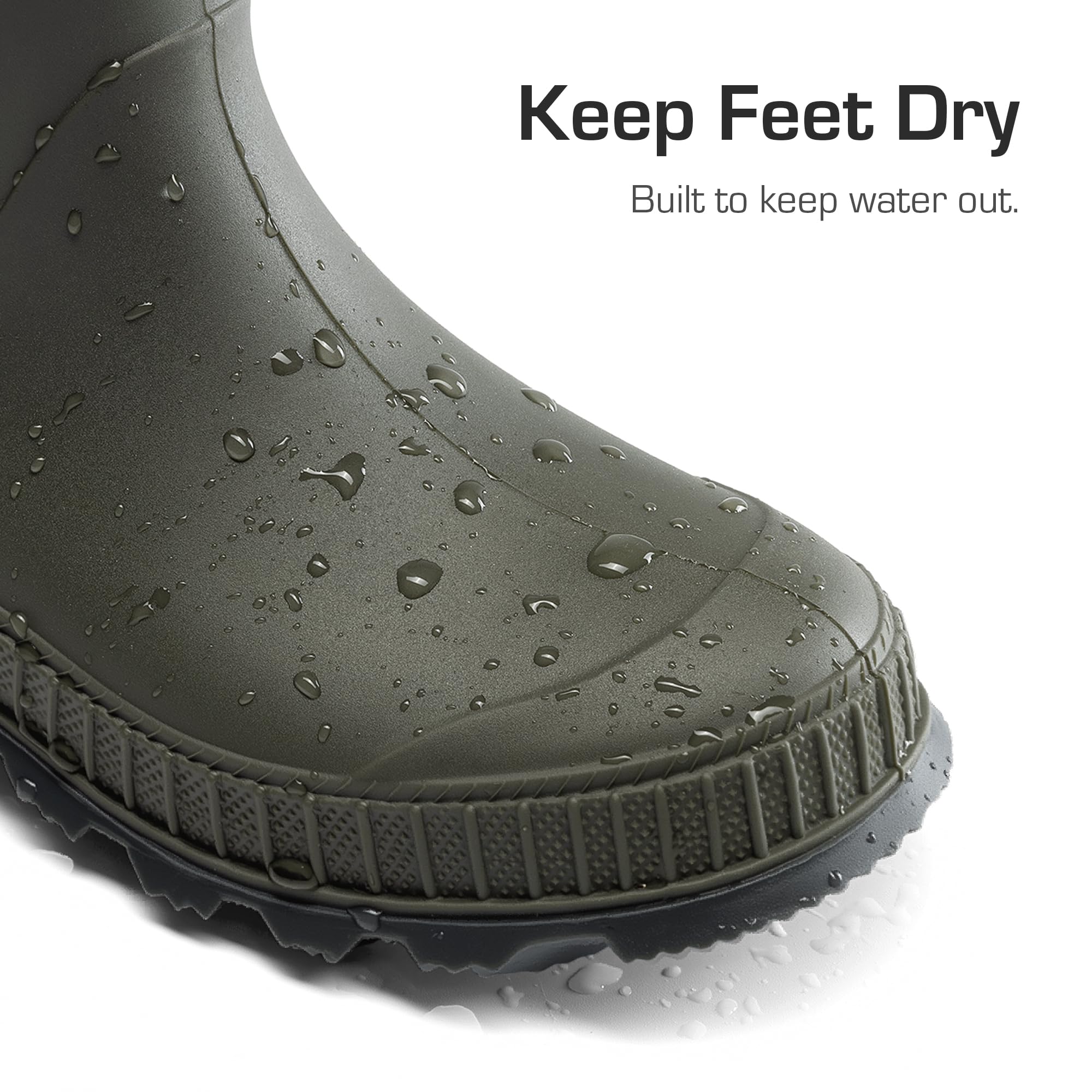 Easy to Wear: Experience quick on-and-off with these rain boots! These water boots take only seconds for your little one to slip on and kick off with their big opening design.