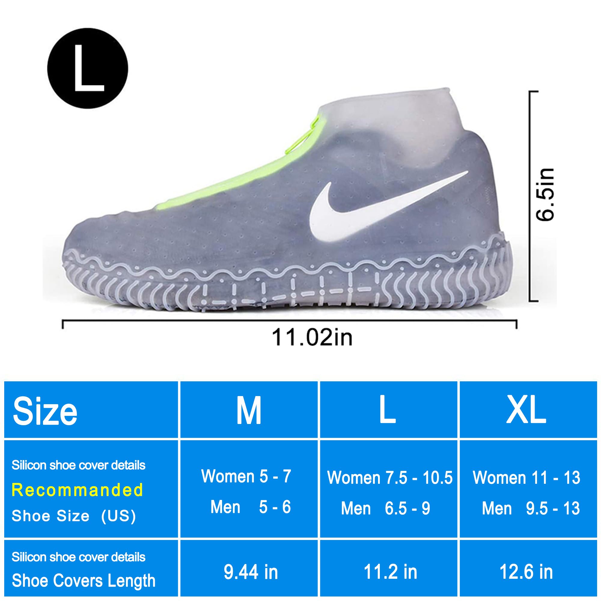 ALL-ROUND WATERPROOF, REUSABLE : Stretchable silicone And very resistant to tearing, Waterproof zipper strip design helps you to put them on and off easily,it can avoid rain or water into the shoe cover from zipper,extending the lifetime of your footwear. Waterproof shoe cover no need to take hundreds of shoe & boot covers, simple to wear silicone waterproof cover just spend one minute.