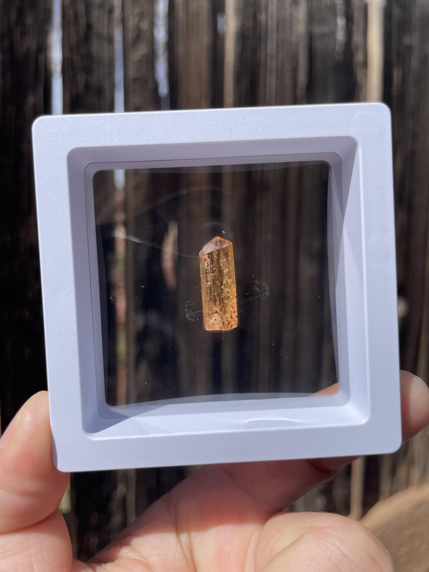 Your shipment will contain one collector’s grade Imperial Topaz Crystal, SMALL SIZE 16-20mm long, approximately 5-10 carats. Each Imperial Topaz Crystal will be shipped in an elegant display frame.