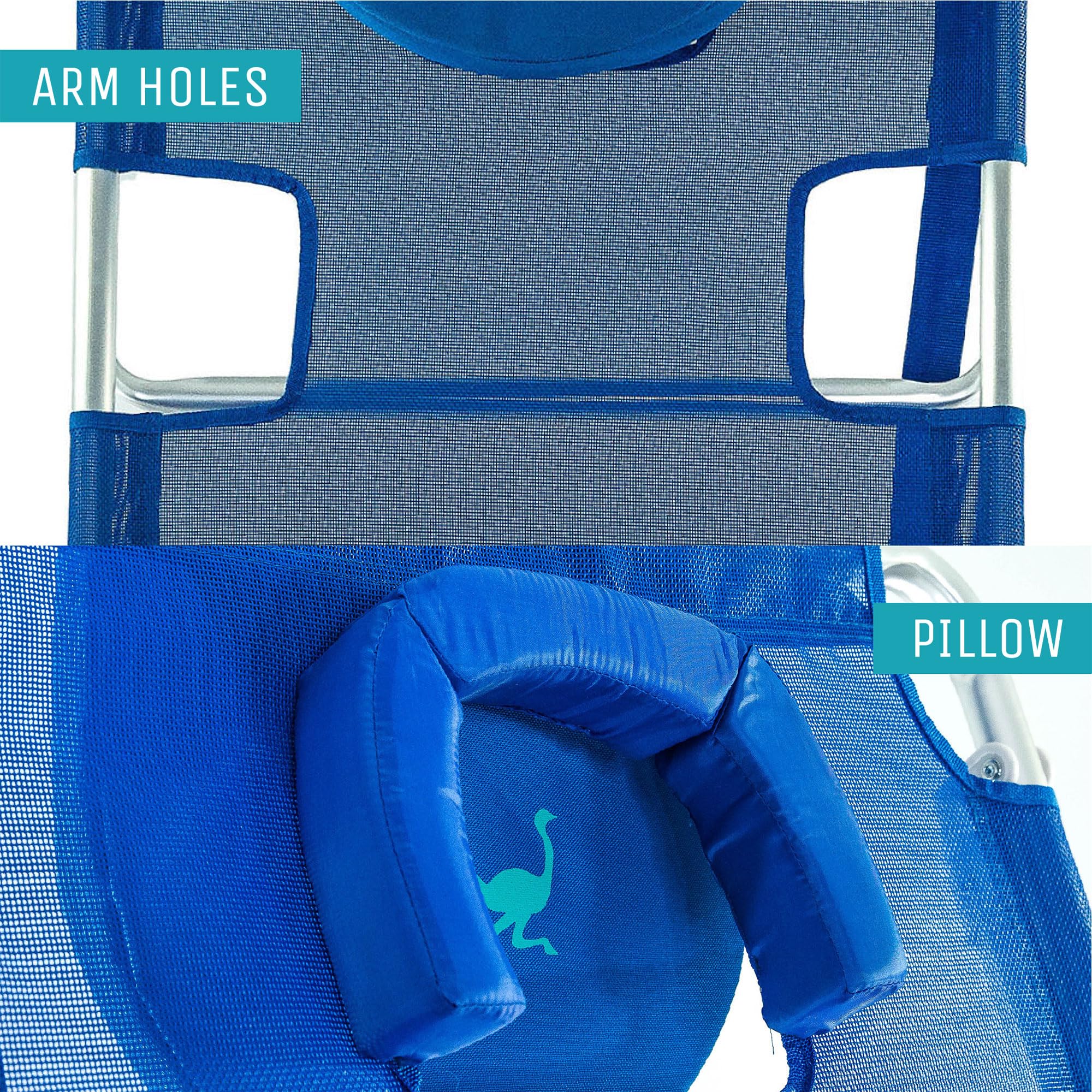 13 inches off ground and weighs 10 lbs. Flat Lounge position: 61"L X 22"W