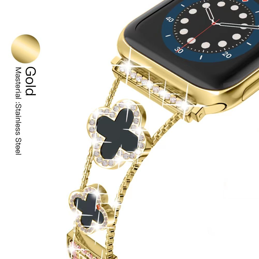 [Unique Design] This luxury Iwatch band features the most popular four-leaf clover design, it Symbolizes luck and hope. This rose gold I watch band uses diamond-encrusted craftsmanship, revealing dignity and elegance in luxury. You'll get a lot of compliments because of it, and it's the perfect combination of personality and style.