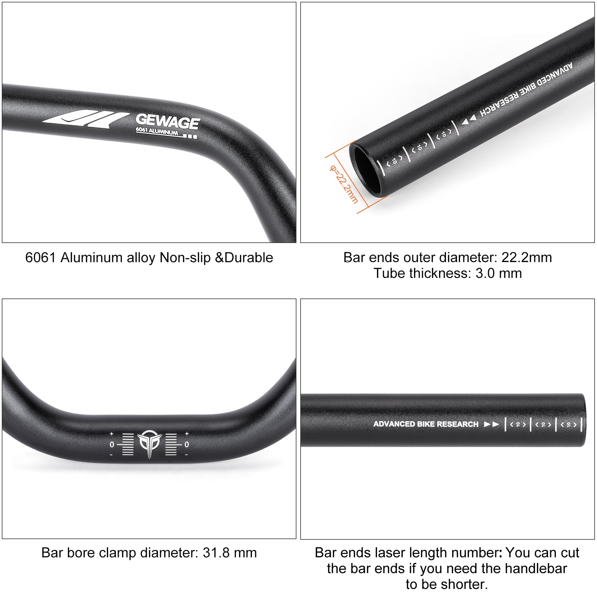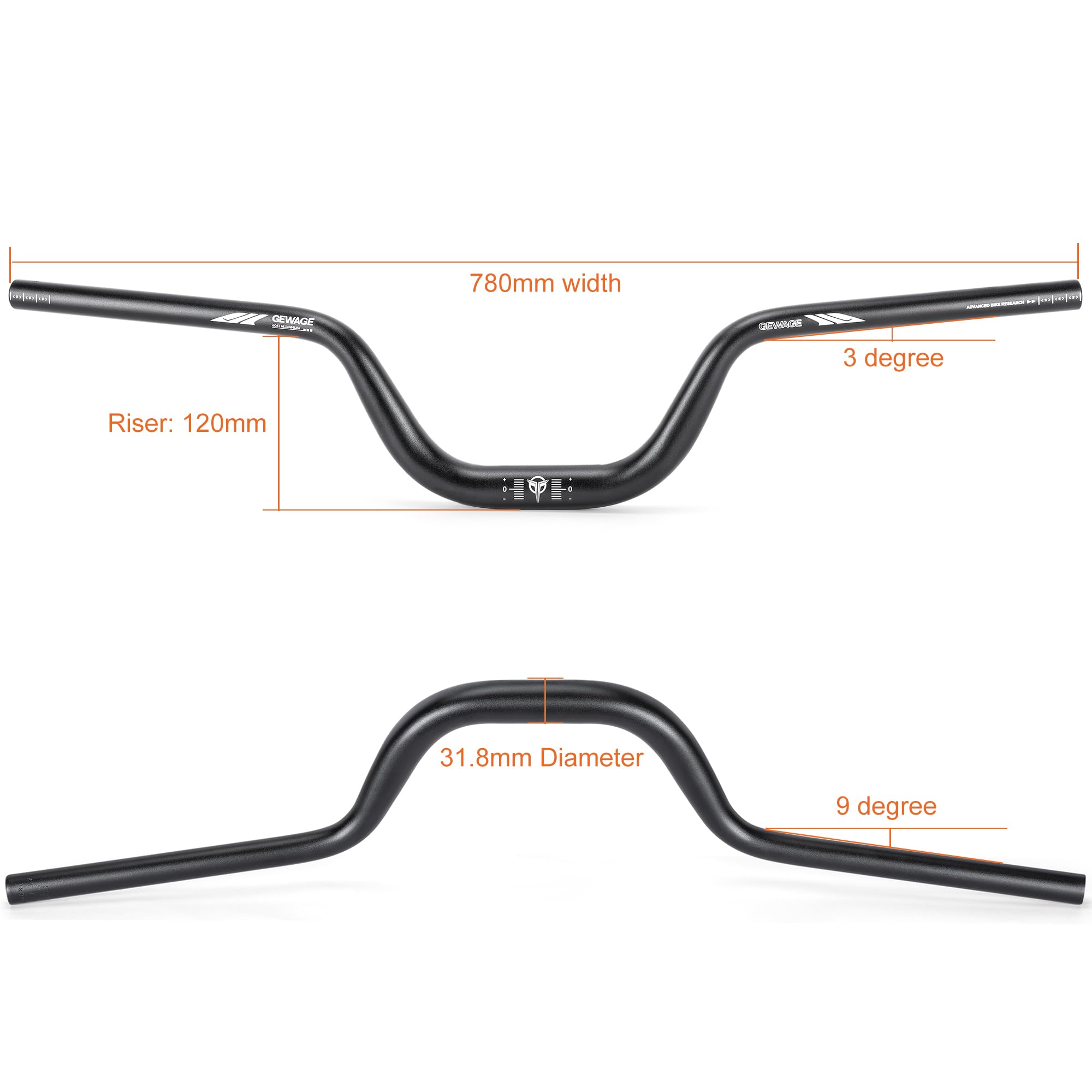 【MODERN AND WELL THOUGHT OUT GEOMETRY】- our mountain bike handlebars Coming in at 12 degrees of rearward sweep, the handlebar helps put your shoulder blades in a more neutral position while reducing wrist fatigue and discomfort.