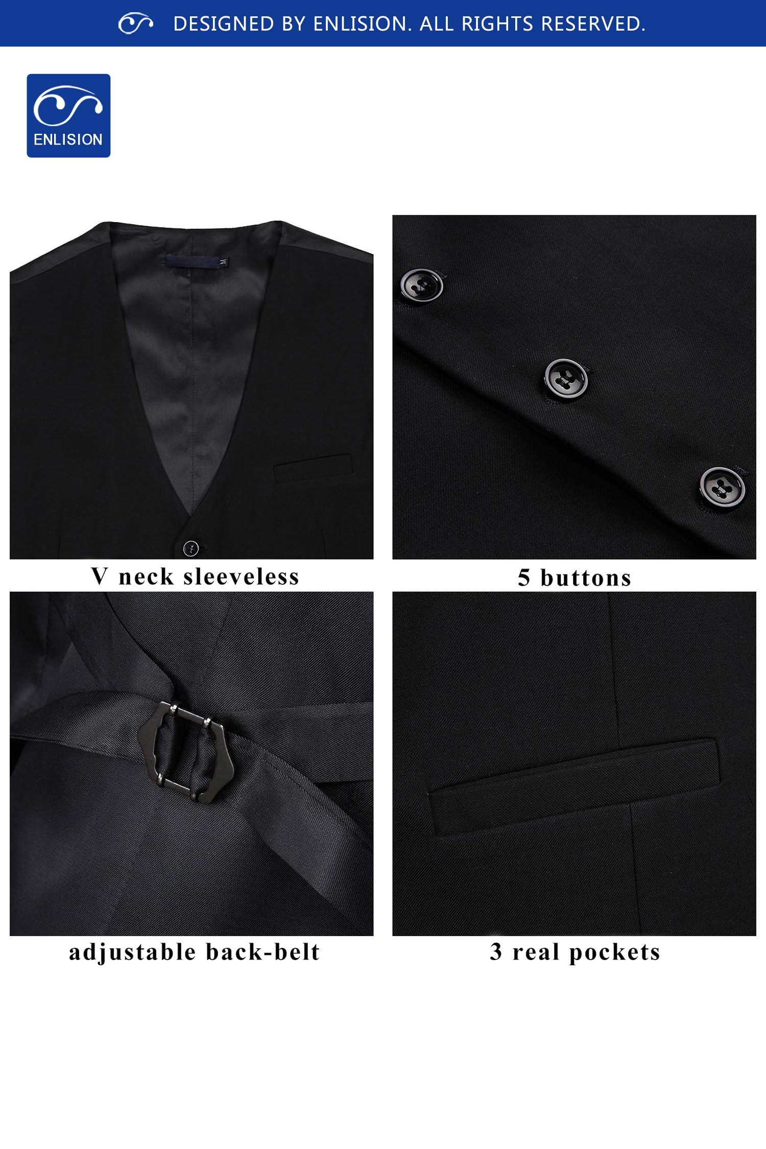 Vest Design: Business vest is designed with classic solid color, V-neck, 5-buttons closure and 1 real pocket on the front, 2 real side pockets; These formal vest sizes are not the same as US size; Please check the size chart carefully on the product picture instead of the Amazon size chart
