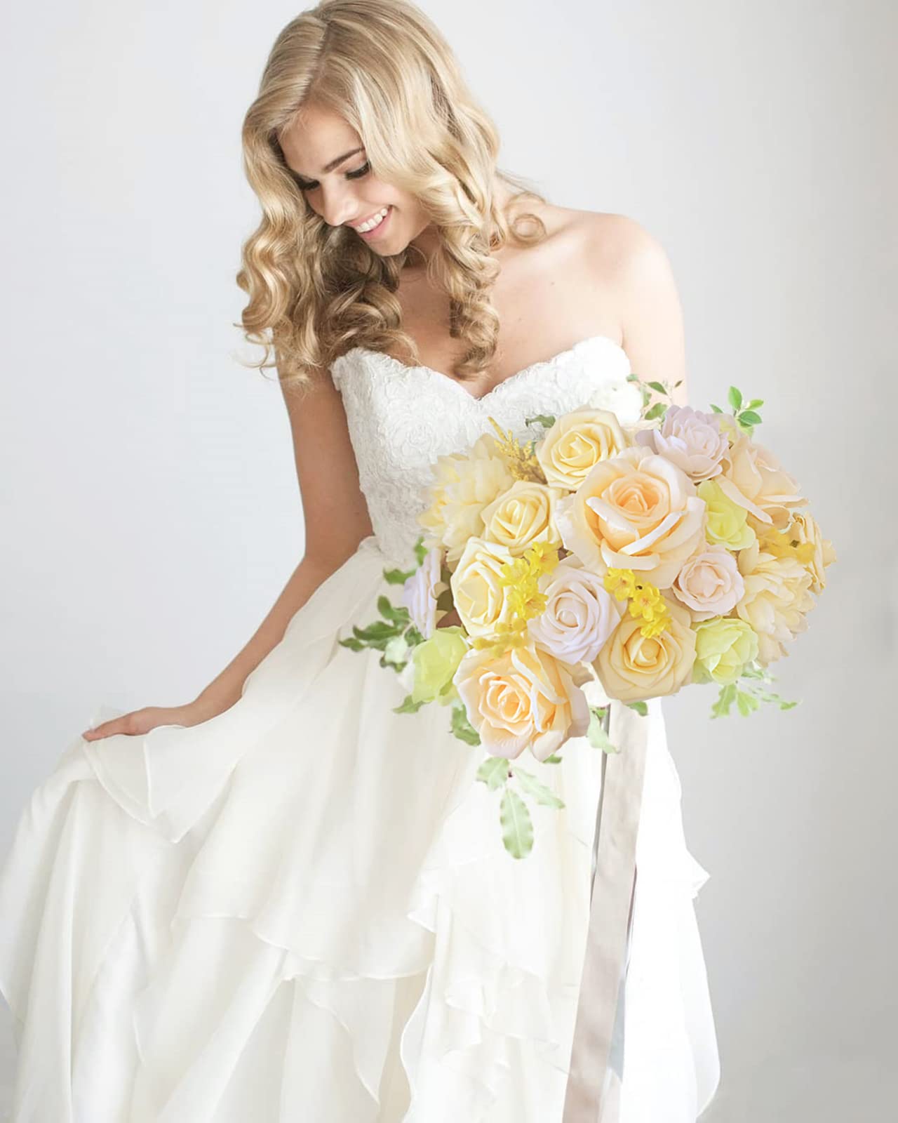 Reusable and Durability: The yellow roses artificial flowers bouquet will blooming forever without any upkeep needed. Repurpose the yellow roses flowers artificial into home floral designs and enjoy all year-round