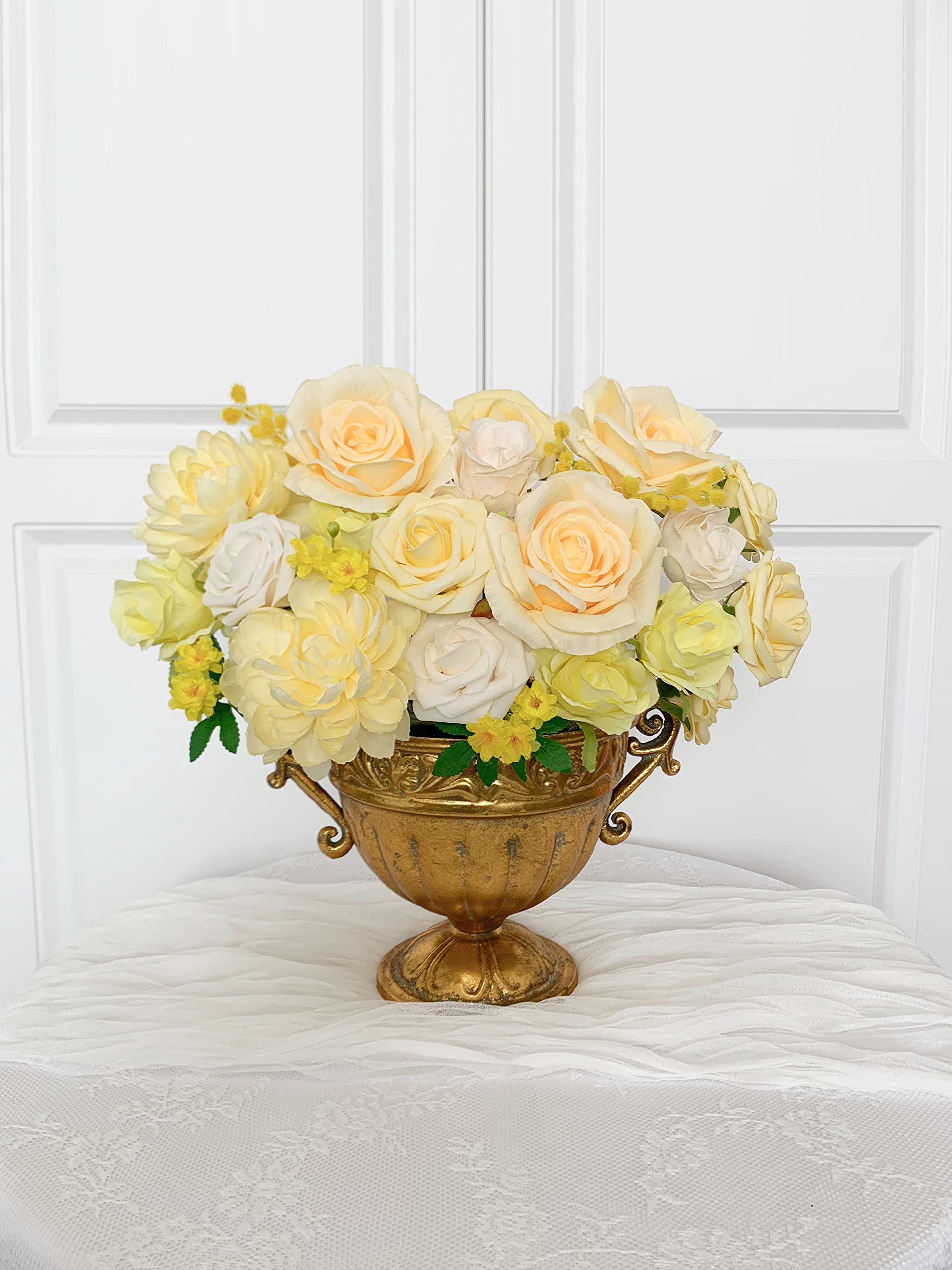Multipurpose: Yellow roses artificial flowers for decoration are the perfect base for wedding table centerpieces and faux floral arrangements. Easily style the yellow roses artificial flowers in bouquet, wreath, cake decorating, arch, vase, backdrop