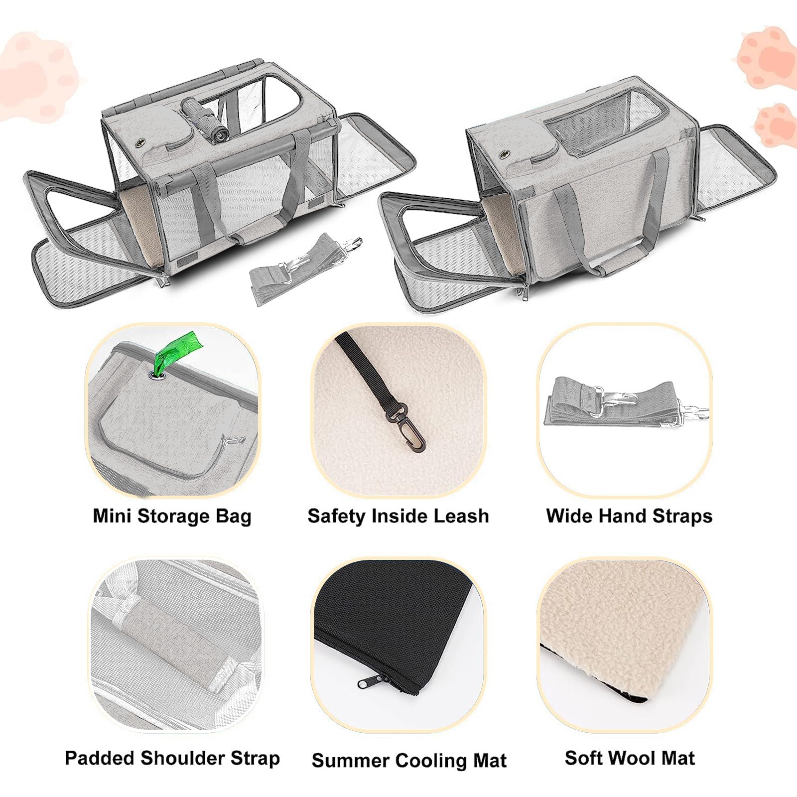 【Collapsible & Lightweight】The cat carrier can be folded into a pad to save your storage space and is easy to take out. Top and side entry.