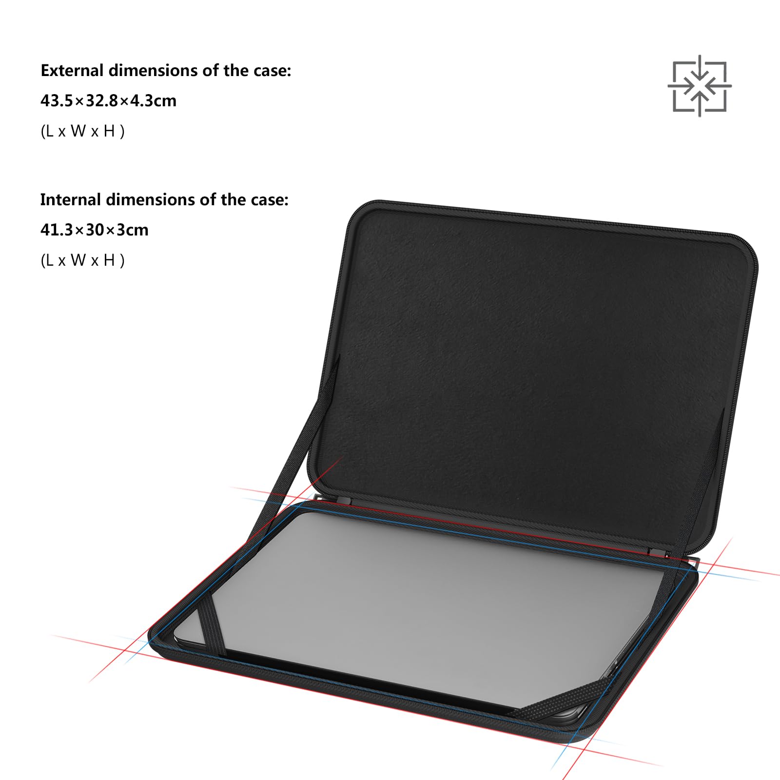 Internal Dimensions: 16.26 x 11.81 x 1.18 inch (41.3 cm * 30 cm * 3 cm) (L x W x H). Kindly Note: Please check your device dimensions against the case internal dimensions to ensure preferred fit. If you have any questions, please feel free to contact us