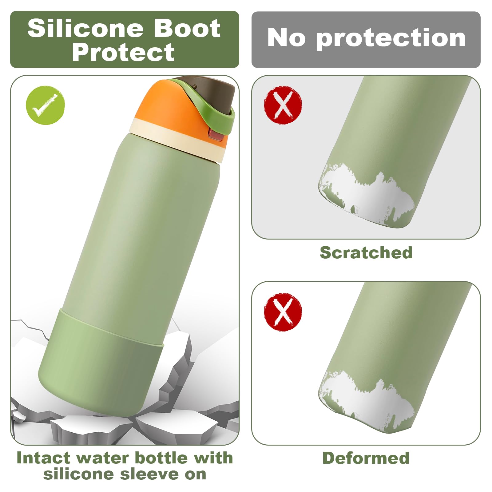 【Perfect Compatiblity】The silicone boot is suitable for Owala 40oz FreeSip, Twist, and Flip stainless steel water bottles. It is precisely made according to the size of the original cups, which perfectly fits the cup bottom and won't fall off easily.