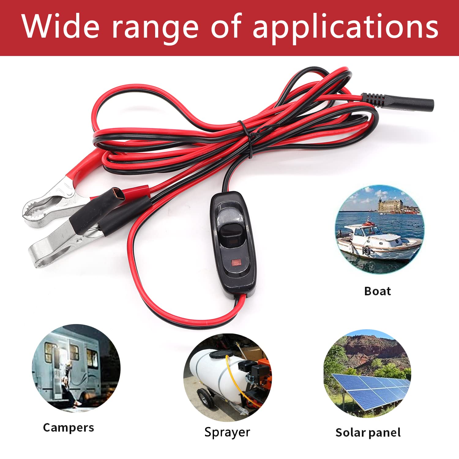 Wide Application: 12-volt alligator clip harness can be widely used in sprayers,tractors, automobiles, motorcycles, lawn mowers, motorcycles, ATV, UTV, etc.