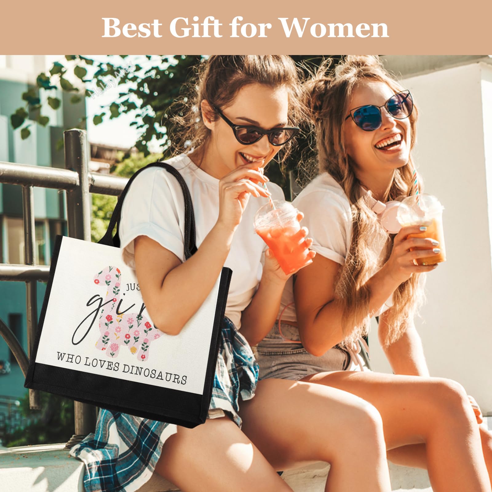 【Unique Canvas Tote Bag】Our women tote bag features a adorable dinosaur printing, We use advanced printing technology to ensure that the animal prints on our tote bags are vibrant, long-lasting, and fade-resistant, even after multiple washes and uses. Best dinosaur gift for dinosaur lovers, suitable as a gift for best friends, sisters, mom, daughter, niece, coworkers, granddaughter and so on.