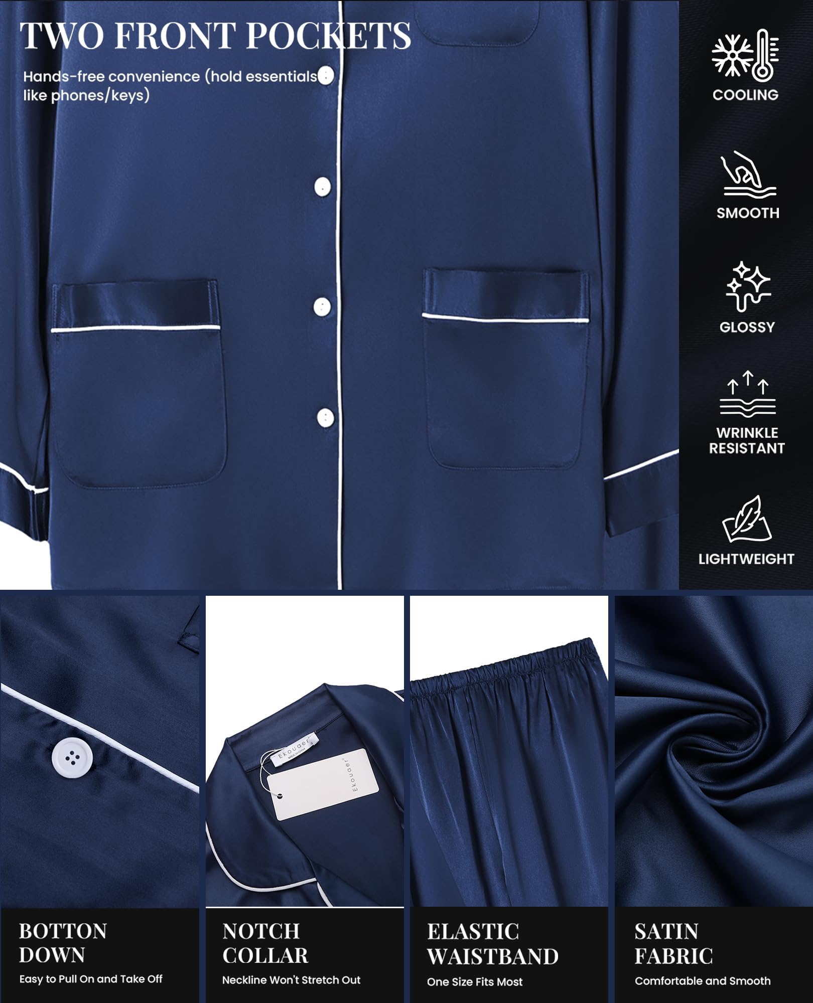 Silky-Smooth Comfort: Crafted from premium satin, this pajama set glides over skin with cloud-like softness. Temperature-regulating and breathable for sweat-free sleep—perfect for hot sleepers or year-round coziness