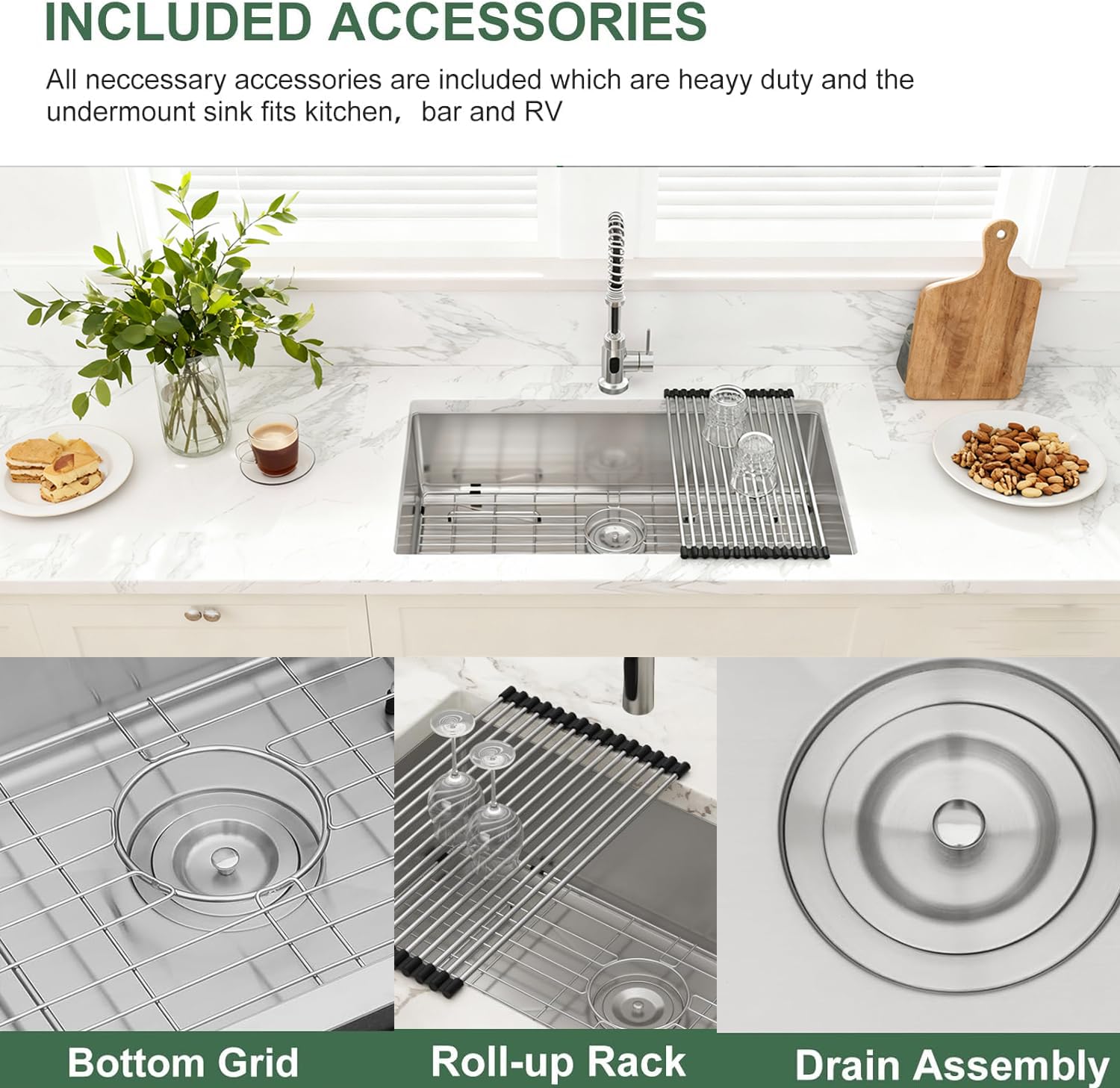 Quiet & Dry Protection: Thick sound-dampening pads line the sink to minimize noise and vibration—say goodbye to loud clattering when washing dishes or filling the sink. It also has a full-coverage anti-condensation layer on the exterior, which blocks moisture from seeping into your cabinet and prevents mold, water damage, or warping.