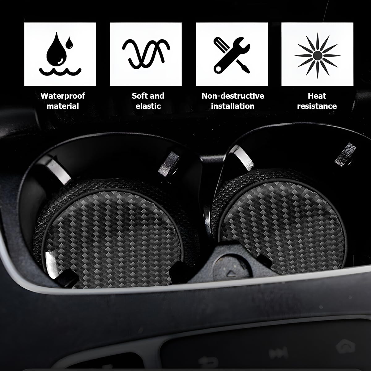 Carbon Fiber: Car cup holder coaster is made of high quality carbon fiber, environmentally friendly material, wear and corrosion resistant, durable, high temperature resistance does not melt, not afraid of the hot summer sun exposure. Soft elasticity, toughness, bending quickly back into shape, can be used for a long time.